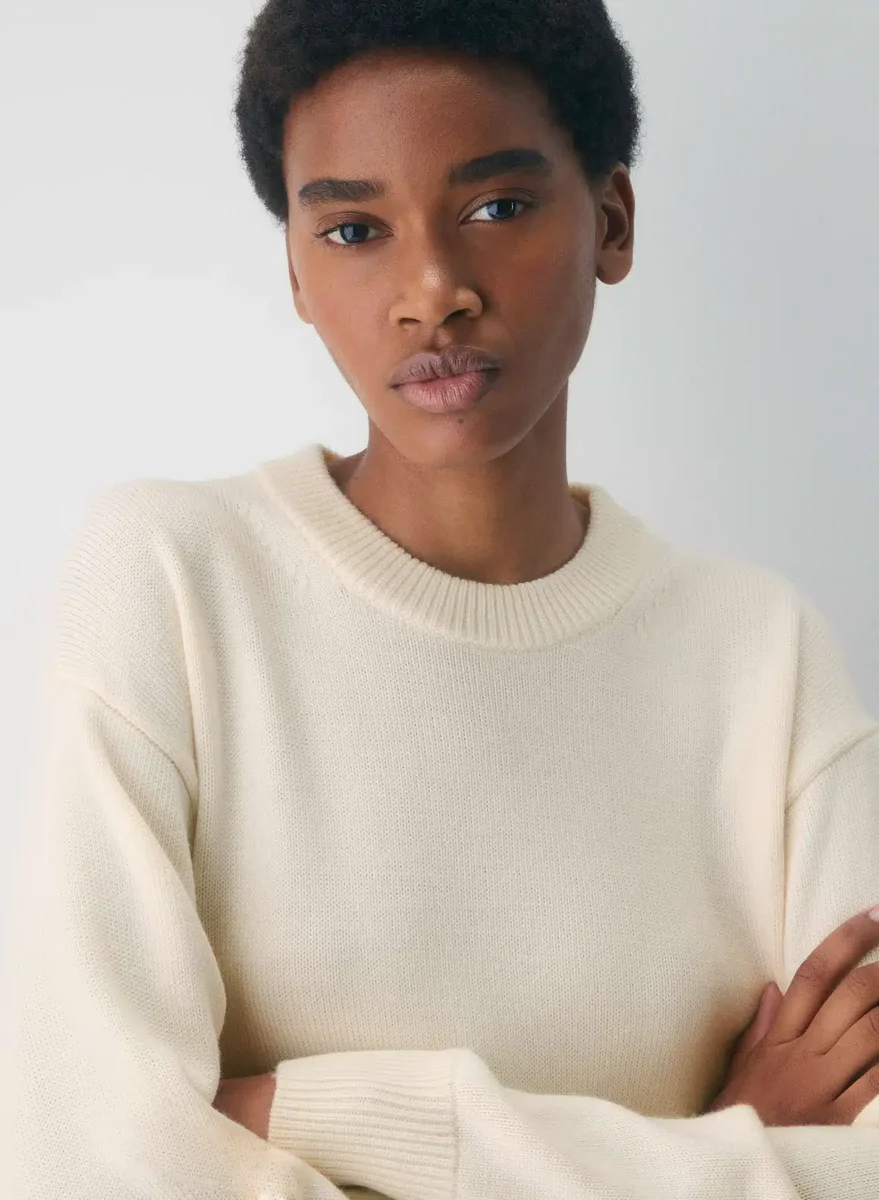 You might never be cold againThis is a relaxed crewneck sweater with ribbed trim. It’s knit with Aritzia’s Essential Merino Wool — perfectly balanced midweight