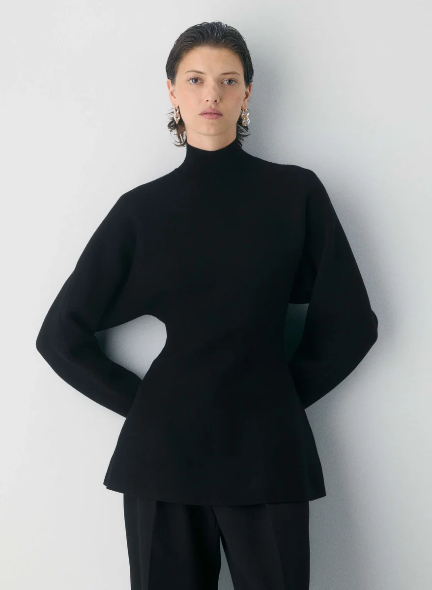 This is a fully fashioned mockneck sweater with a relaxed fit and waist-emphasizing hourglass silhouette. It’s knit with Wonder Yarn — the lightweight yarn that lives up to its name. This peachy-soft yarn offers the all-season warmth of wool, without the wool. It’s made with LENZING™ ECOVERO™ Viscose. This version is constructed using a Double Jersey stitch for structure and a flat, dense feel.