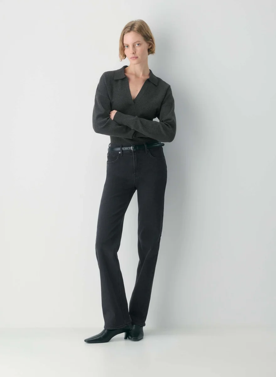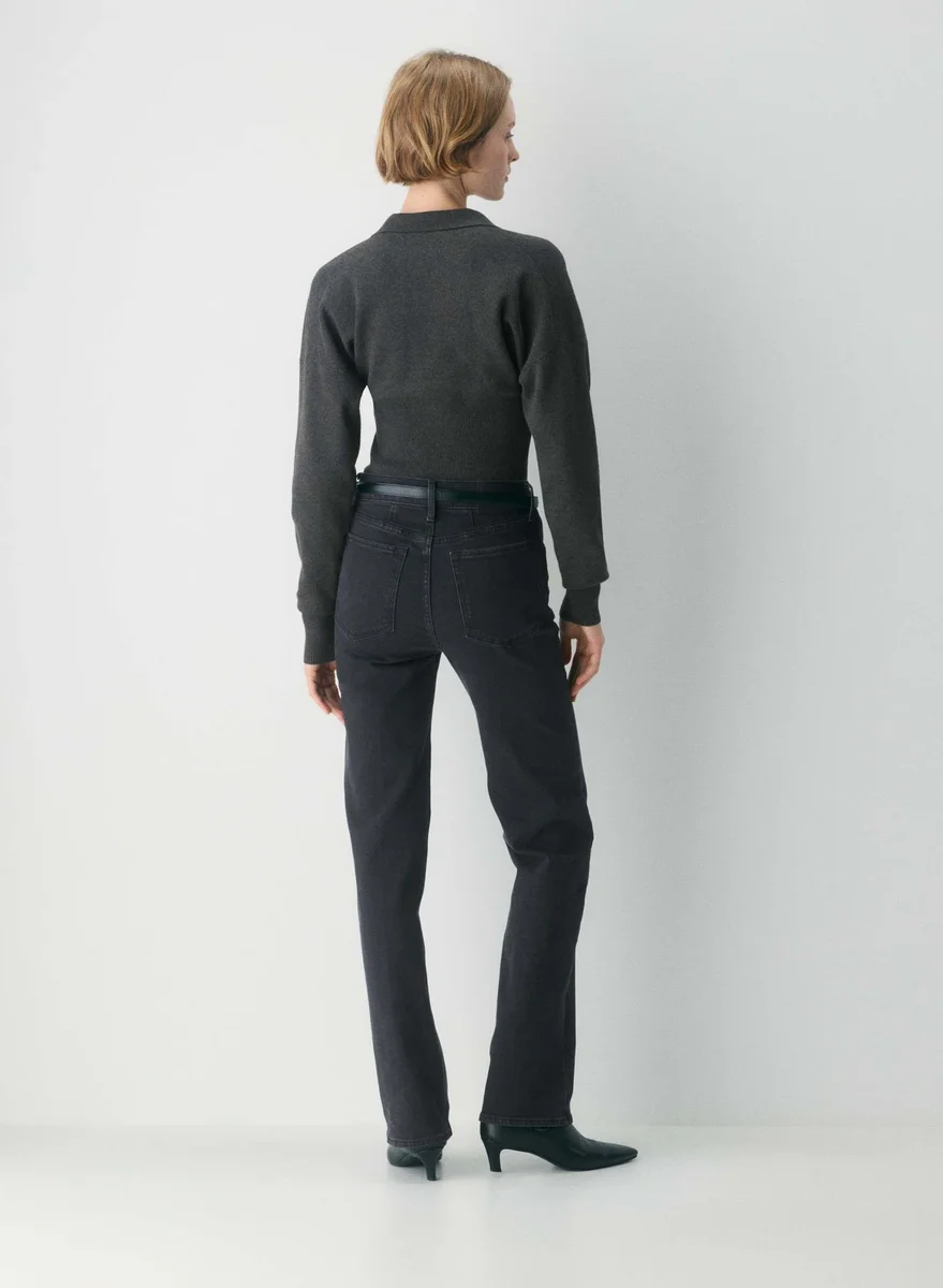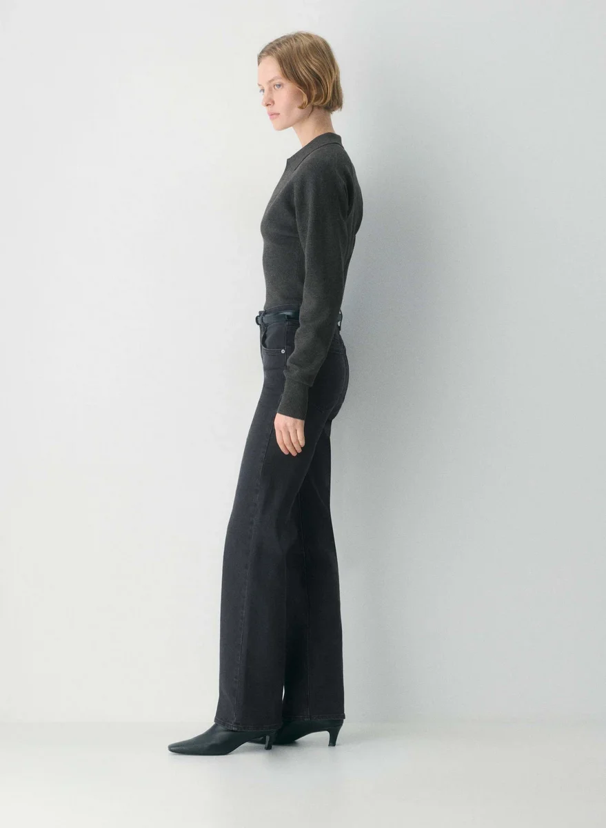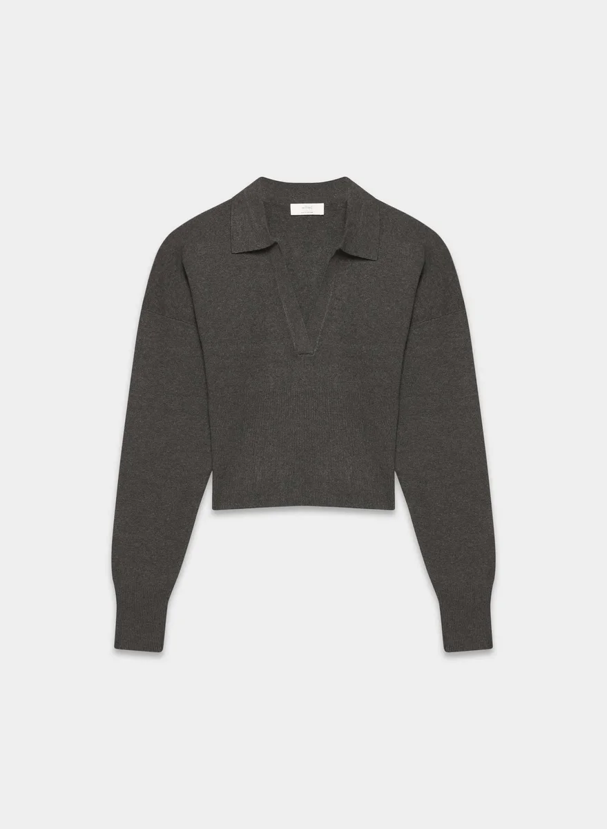 This is a polo sweater with a wide ribbed waistband. It’s knit with Wonder Yarn — the lightweight yarn that lives up to its name. This fabric offers the peachy softness of wool, without the wool. It’s made with LENZING™ ECOVERO™ Viscose. This garment is constructed using a Full Milano stitch with a double-layer structure for a flat, dense feel.
