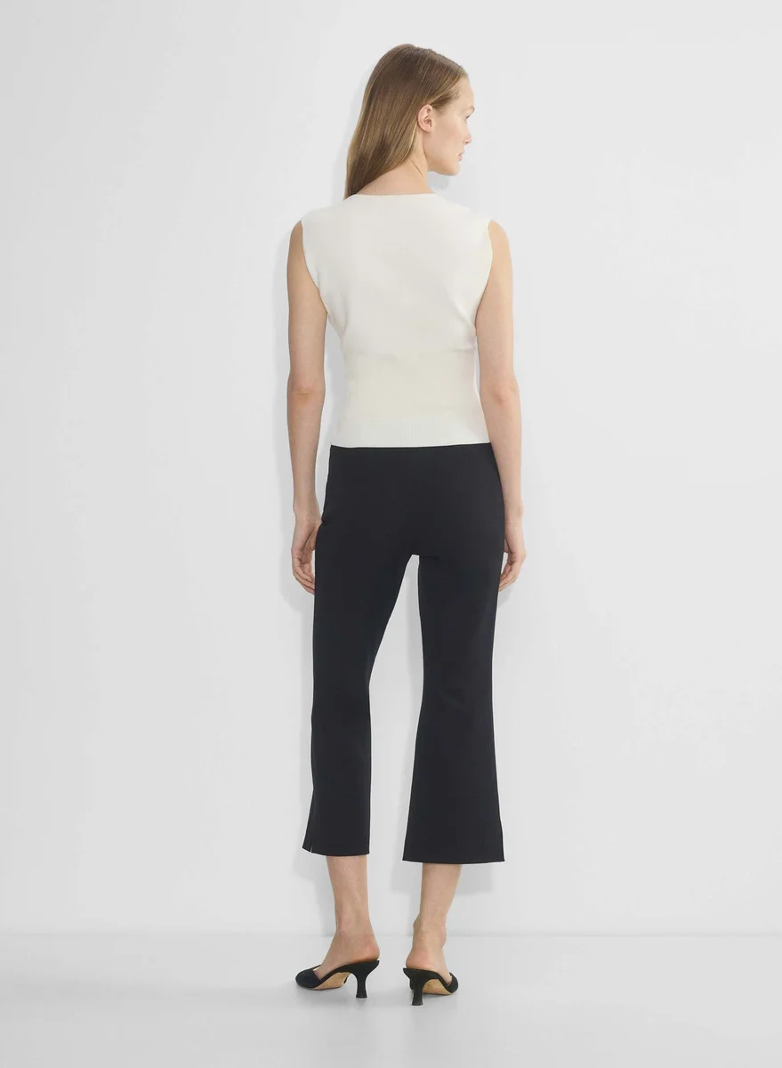 This is a fully fashioned sleeveless crewneck cardigan with ribbed detailing. It’s made with Wonder Yarn — the lightweight yarn that lives up to its name. This peachy soft yarn offers the all-season warmth of wool, without the wool, and is made with LENZING™ ECOVERO™ Viscose. This cardigan is constructed using a Full Milano stitch with a double-layer structure for a flat, dense feel.