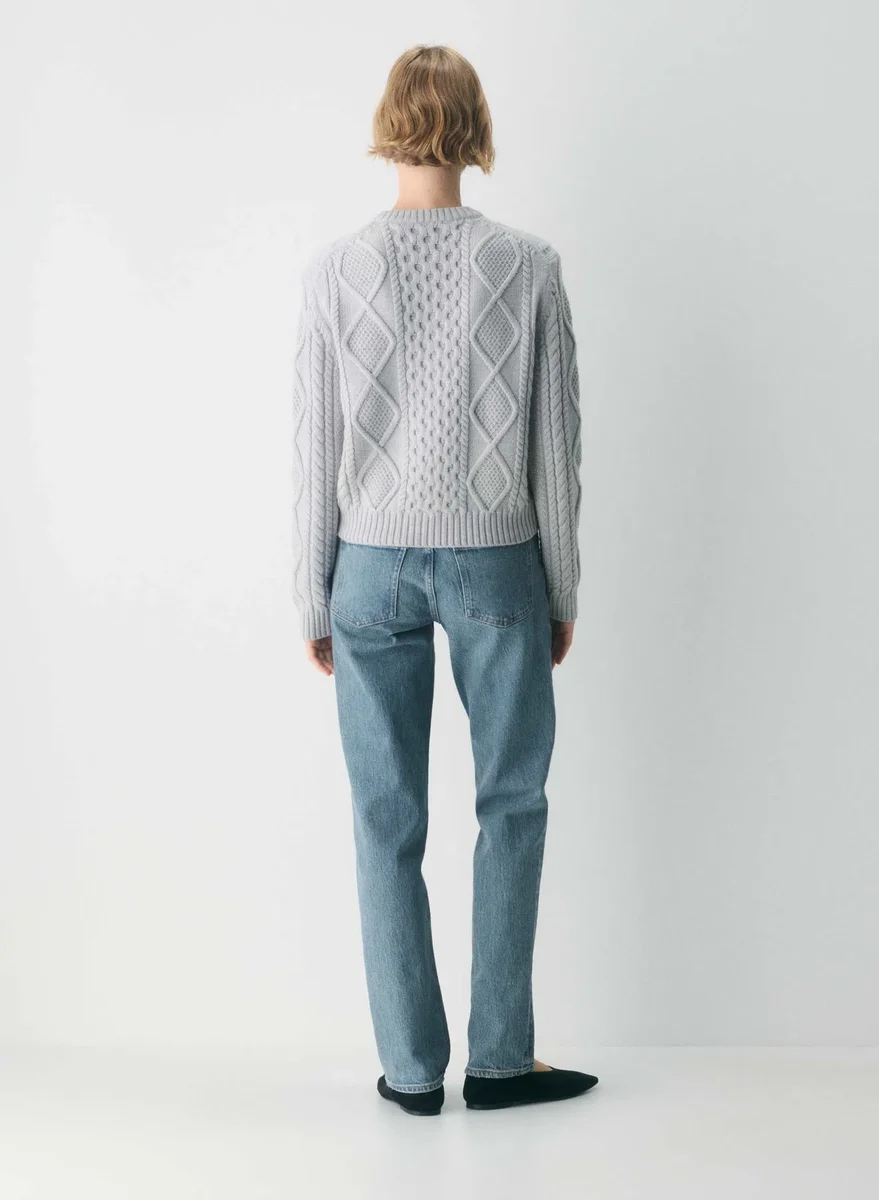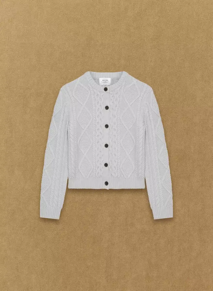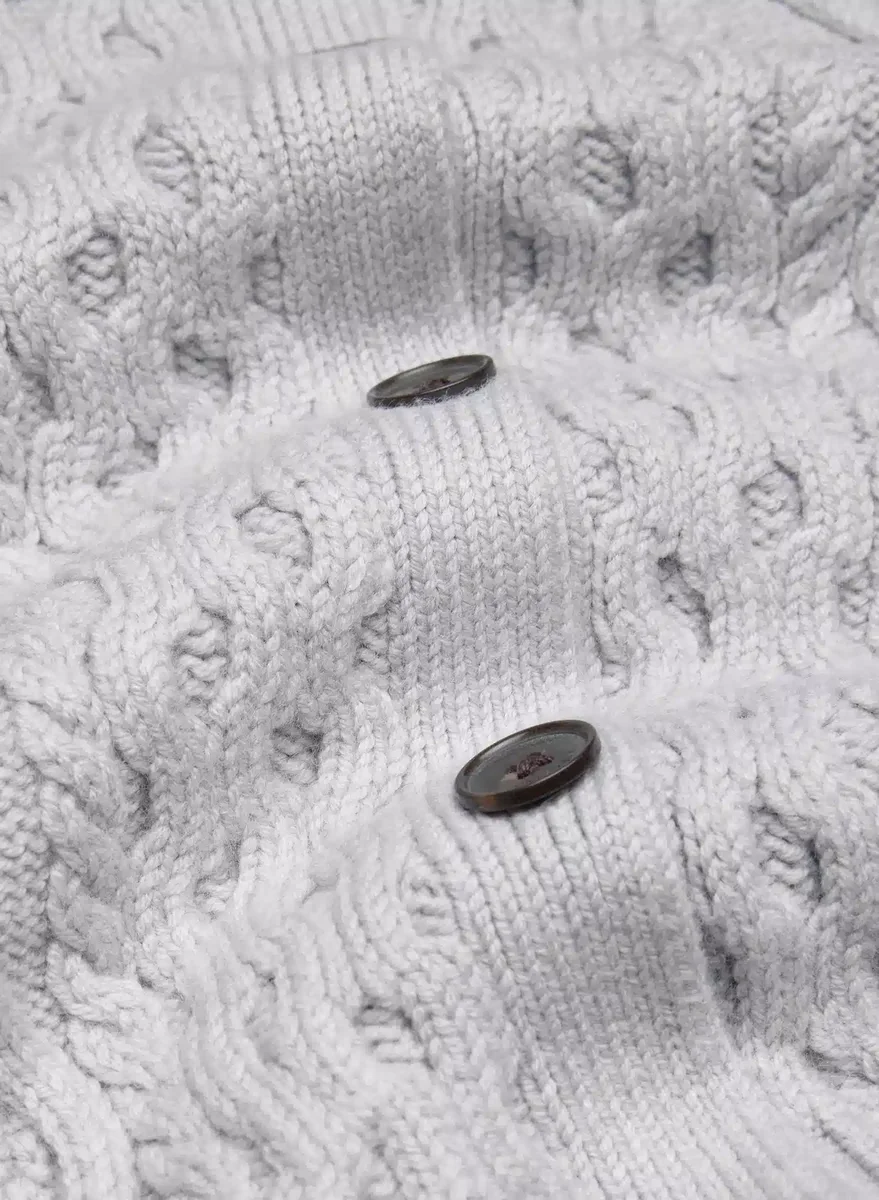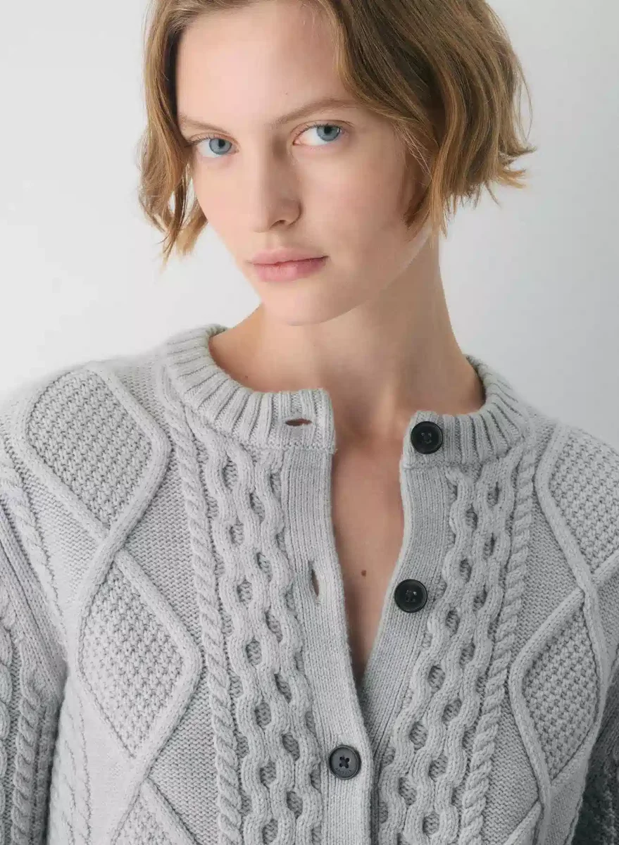 A sweater your grandma can understandThis is a crewneck cardigan with a classic fit. It’s knit with Aritzia’s Merino Wool — lofty 100% extra-fine merino wool yarn coveted for its natural warmth and soft feel. This luxurious yarn is made with responsibly sourced wool. This garment is constructed using our Coastal Cable stitch, a classic cable-knit pattern with mixed decorative accents for a textural look and feel.Our cable-knit construction is inspired by traditional Irish heritage and crafted with care to achieve a timeless cable pattern.