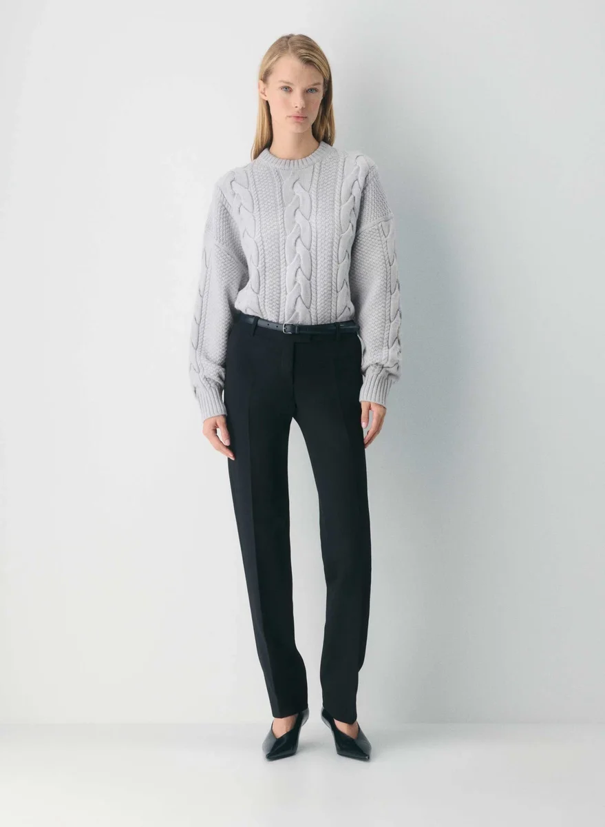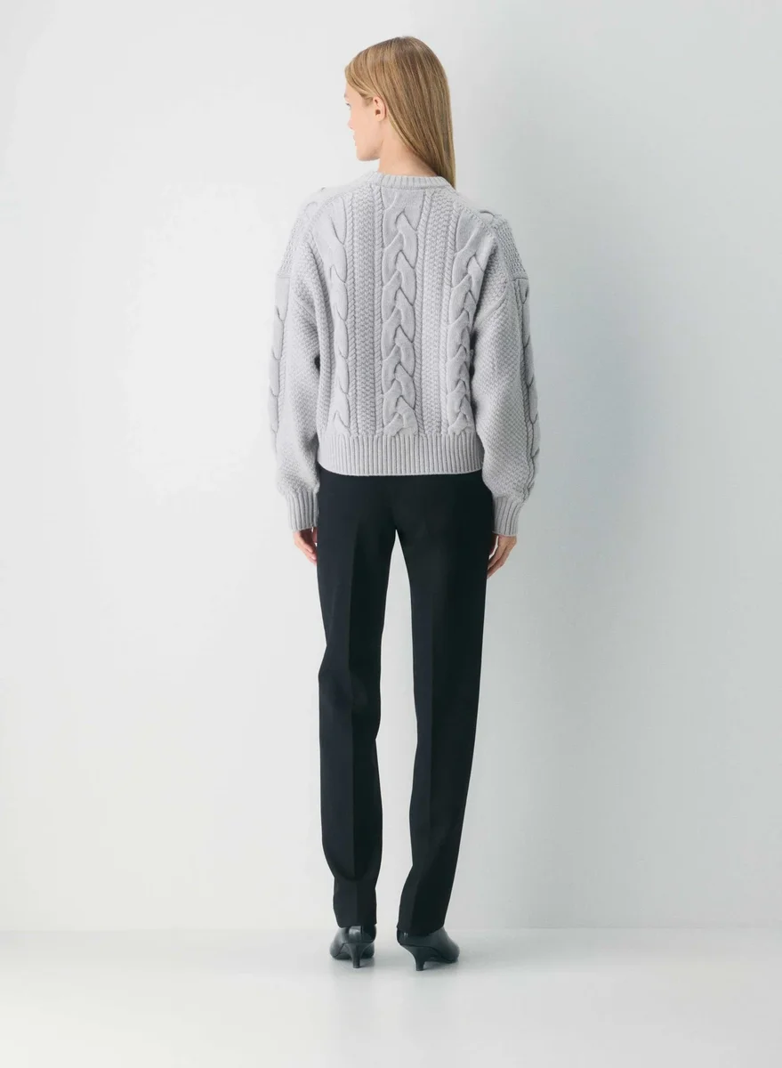 This is a crewneck sweater with ribbed trim and a classic fit. It’s knit with Aritzia’s Merino Wool — lofty 100% extra-fine merino wool yarn coveted for its natural warmth and soft feel. This luxurious yarn is made with responsibly sourced wool. This version is constructed using our Anchor Cable stitch, a distinctive pattern featuring extra large cables for a textural look and feel. Our cable-knit construction is inspired by traditional Irish heritage and crafted with care to achieve a timeless cable pattern.