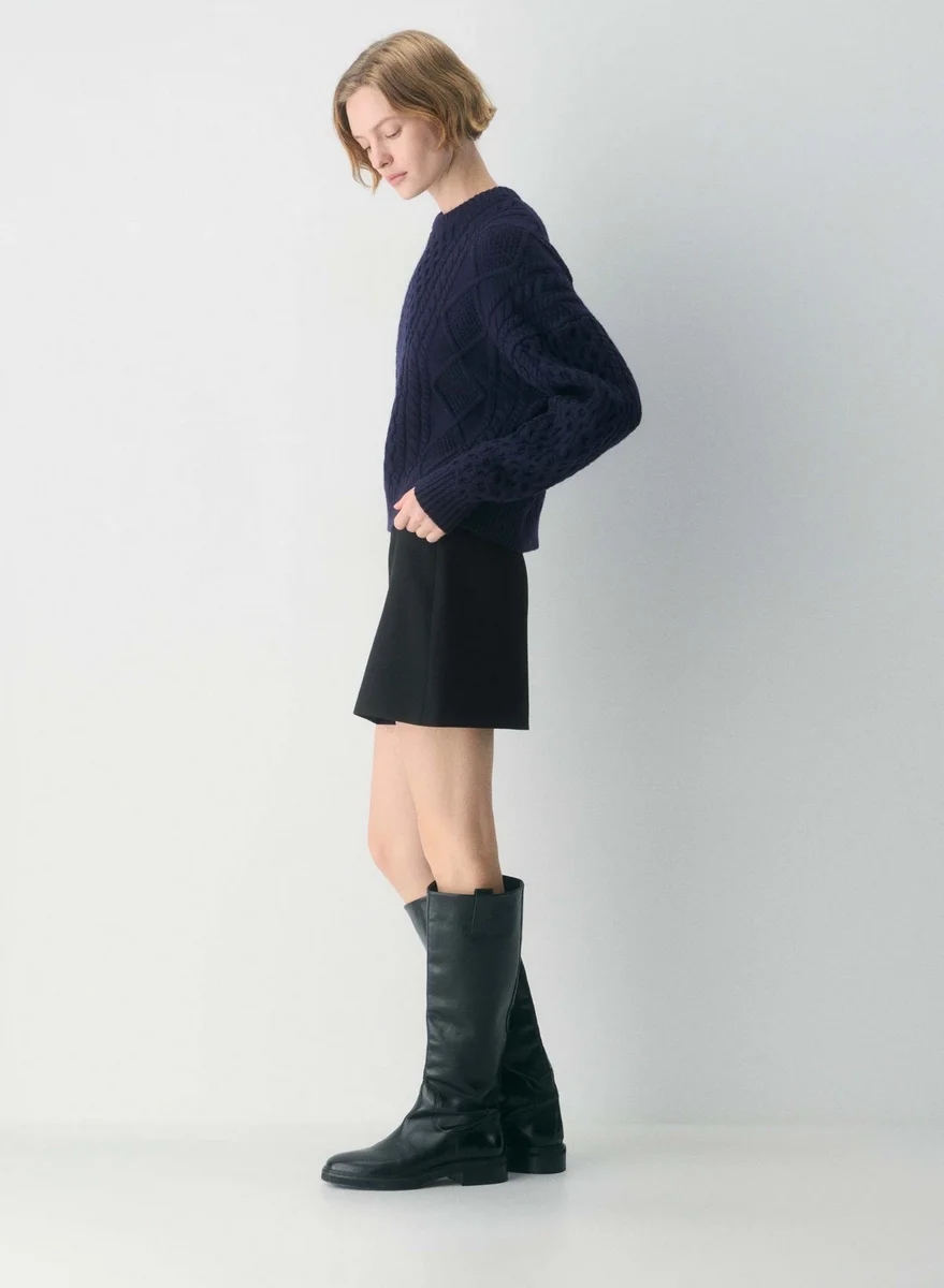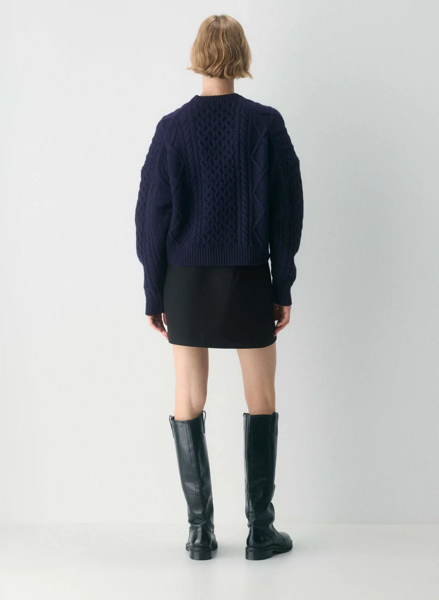 Cable-knit, 100% extra-fine merino wool crewneck sweater