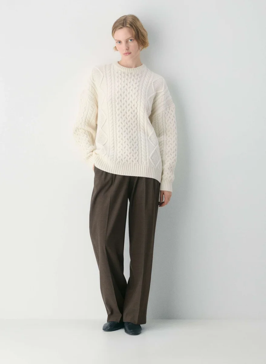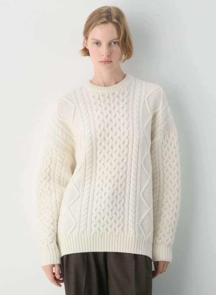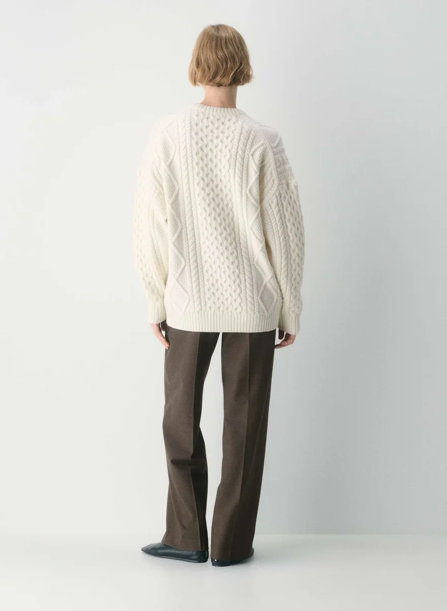 Cable-knit 100% extra-fine merino wool crewneck sweater