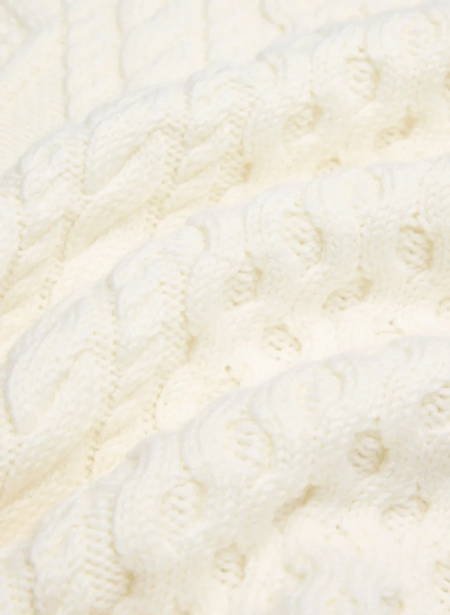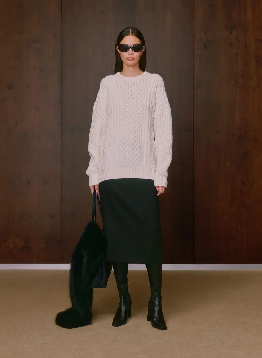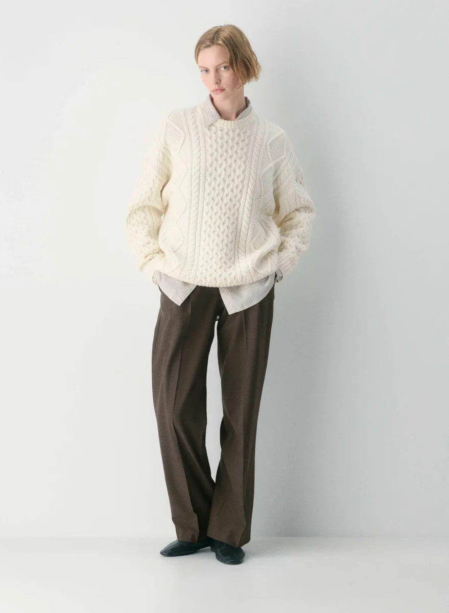 Cable-knit 100% extra-fine merino wool crewneck sweater