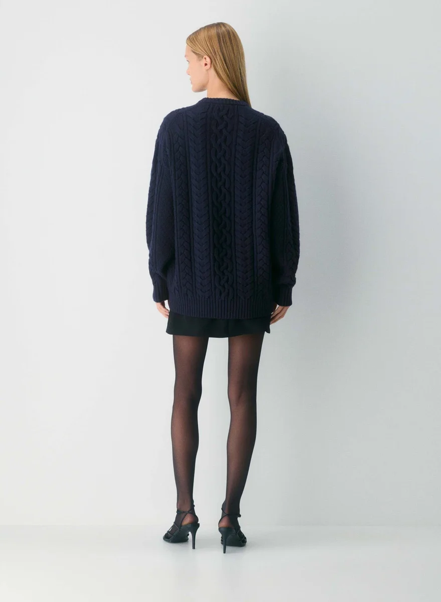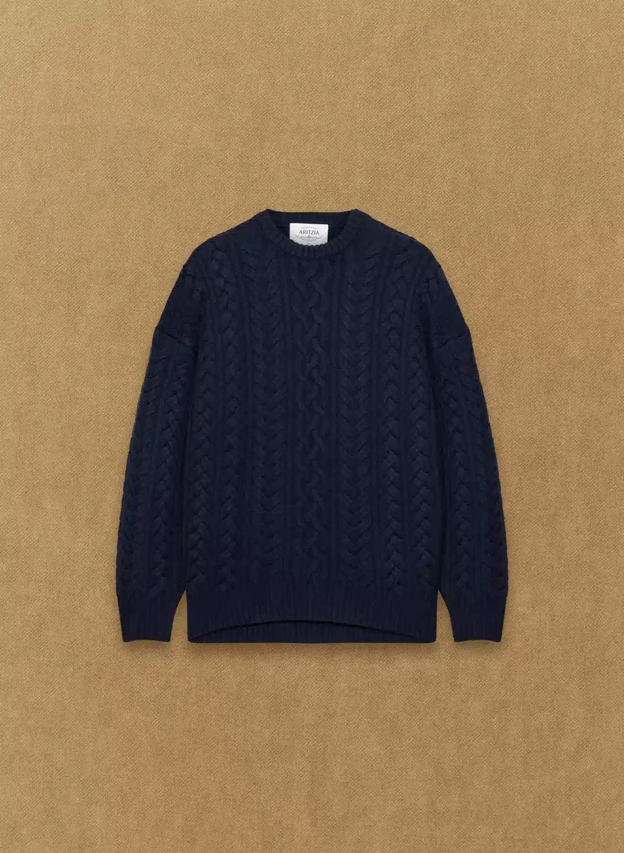 Cable-knit, 100% extra-fine merino wool cable-knit crewneck sweater