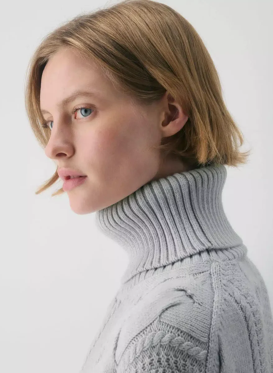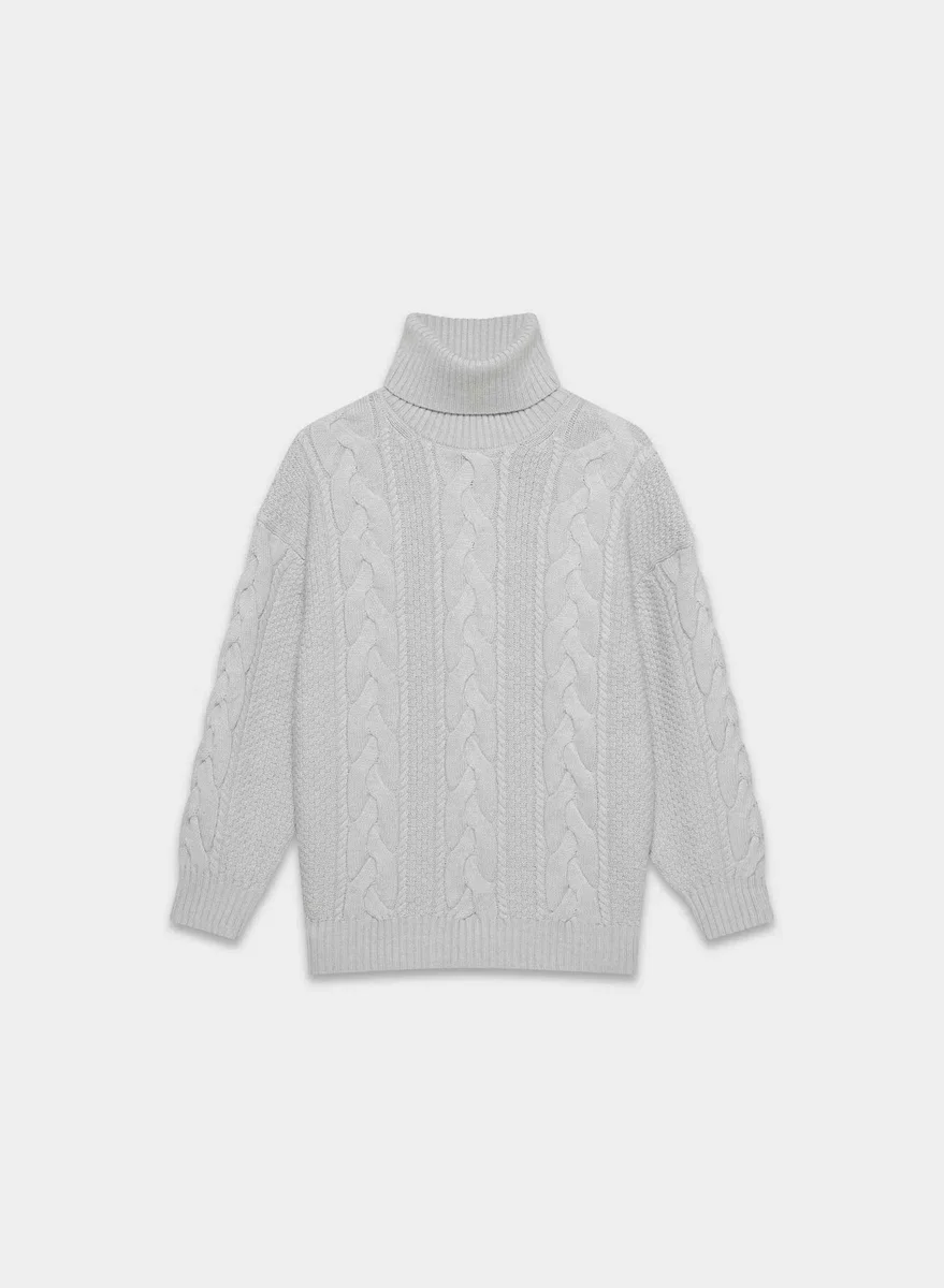 Cable-knit 100% extra-fine merino wool turtleneck sweater