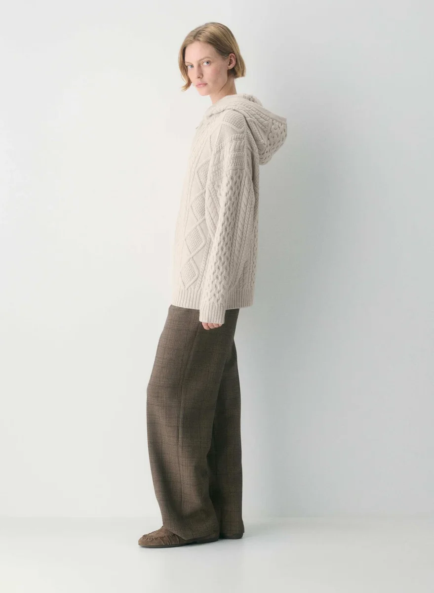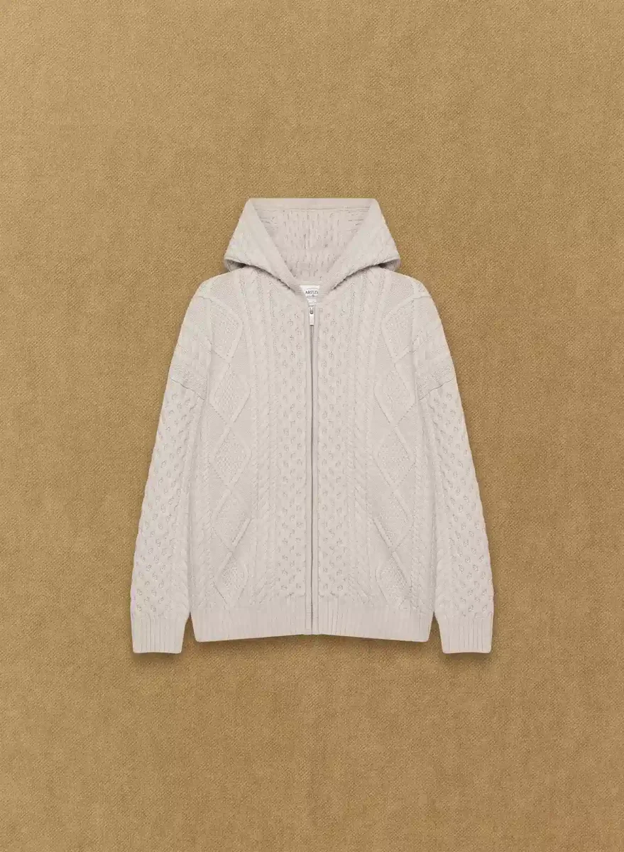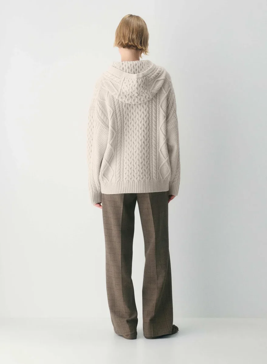 Cable-knit, 100% extra-fine merino wool zip hoodie