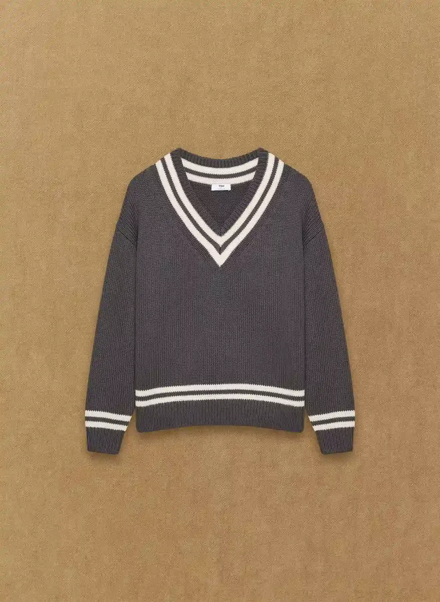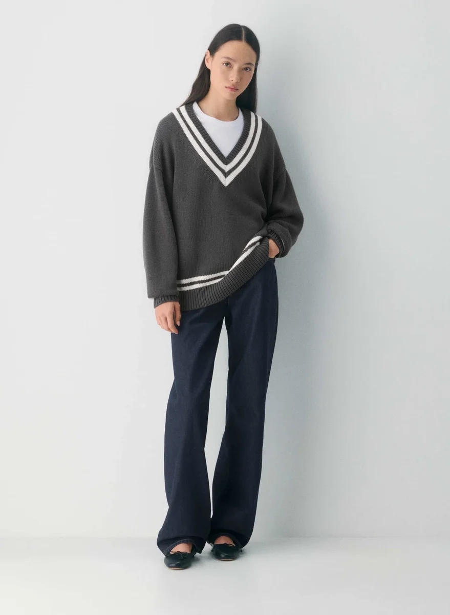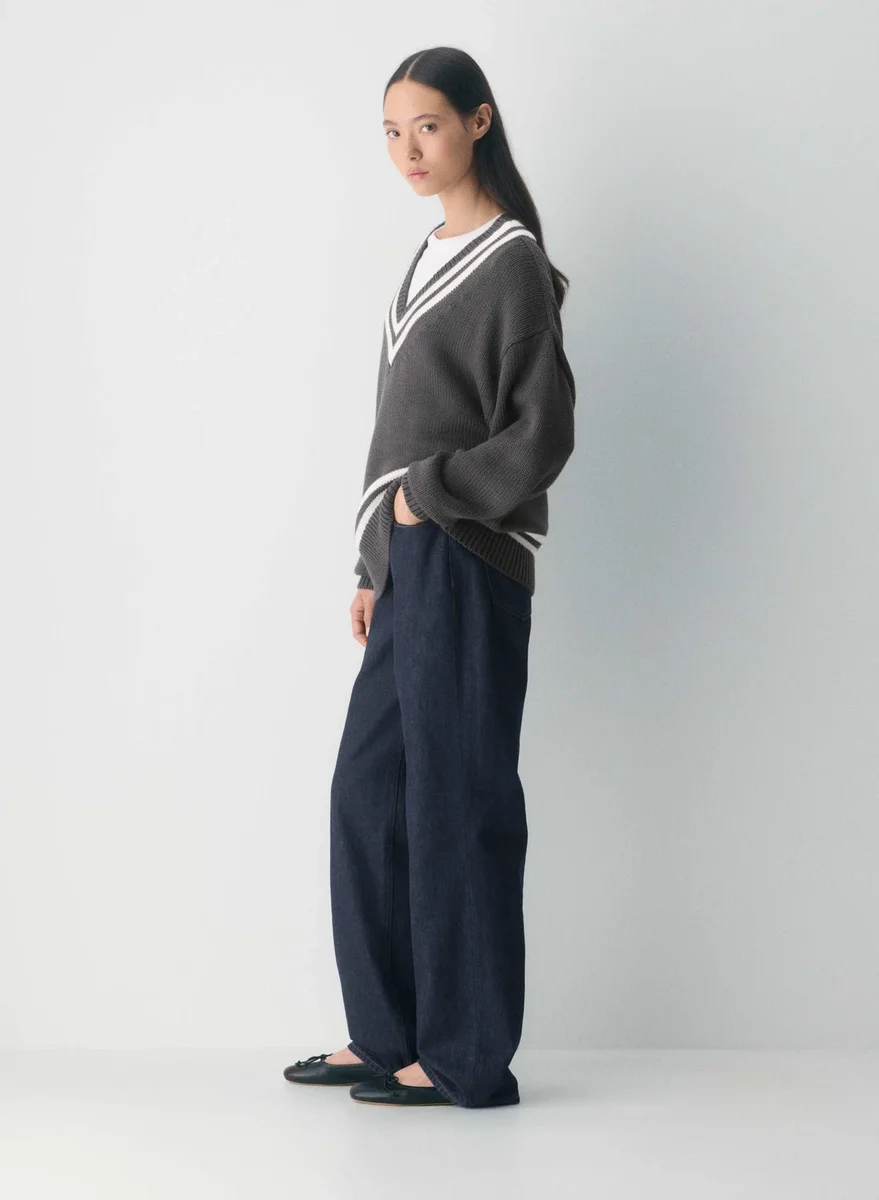 Merino wool and cotton V-neck sweater