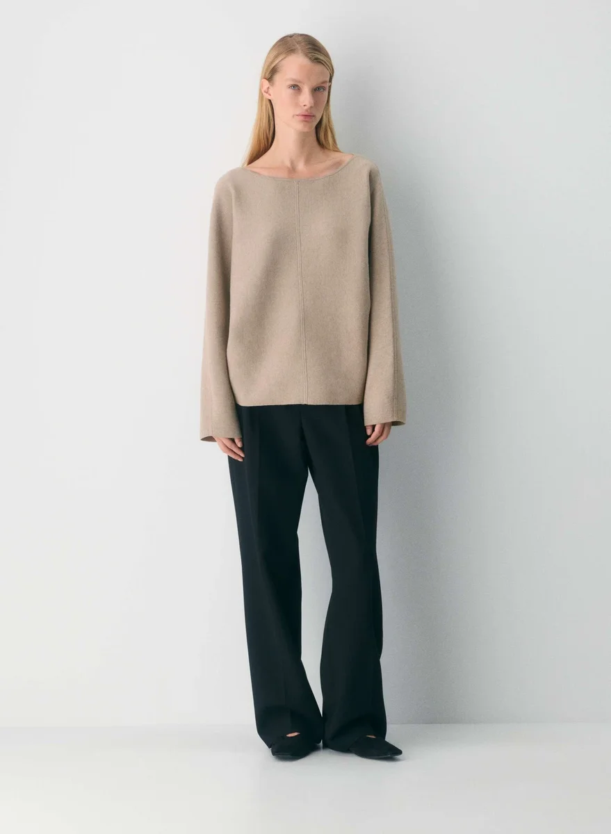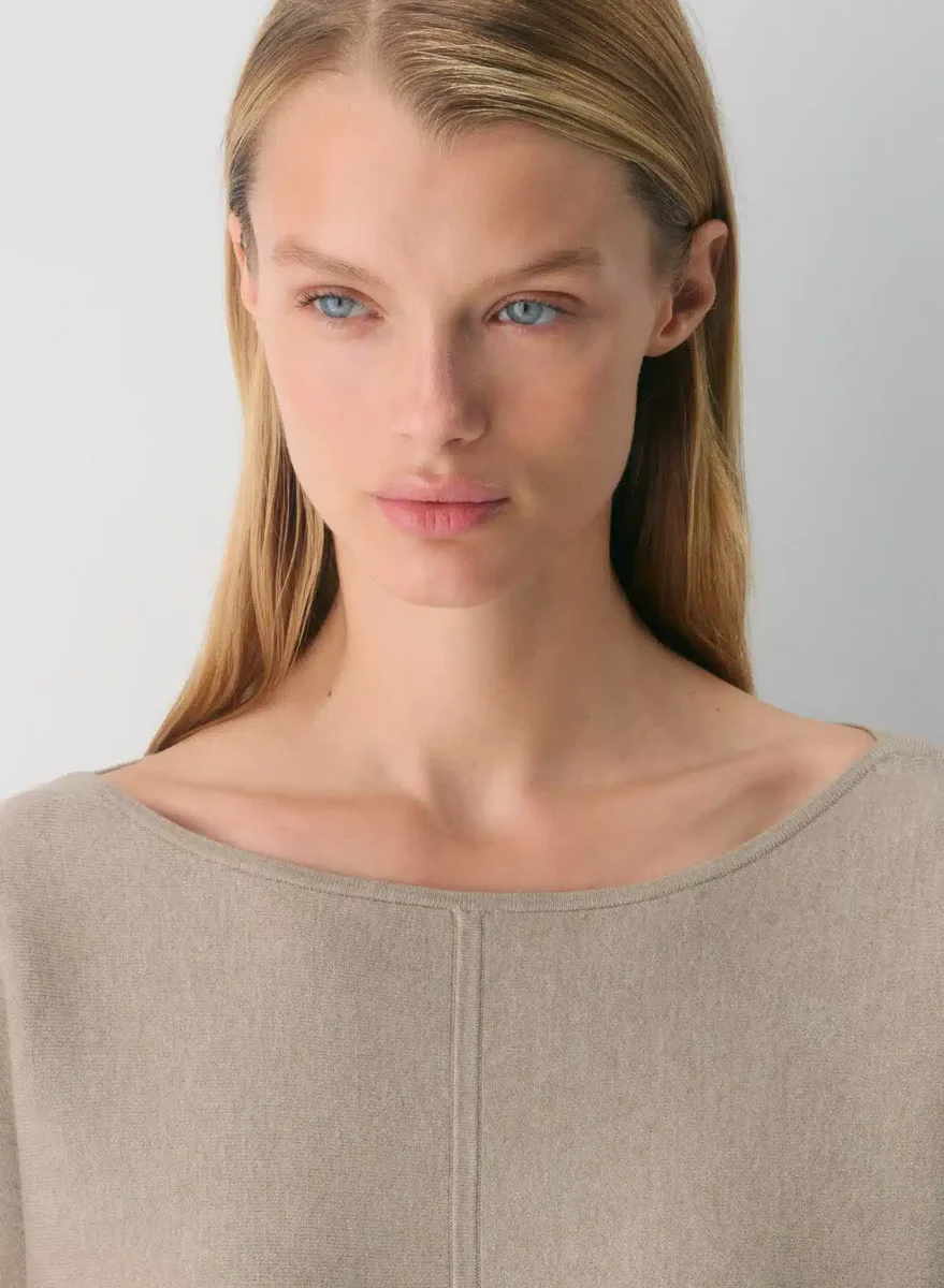 Simple yet wonderfulThis is a fully fashioned boatneck sweater with a relaxed fit. It’s knit with Wonder Yarn — the lightweight yarn that lives up to its name. This fabric offers the peachy softness of wool, without the wool. It’s made with LENZING™ ECOVERO™ Viscose. his garment is constructed using a Double Jersey stitch for structure and a flat, dense feel.