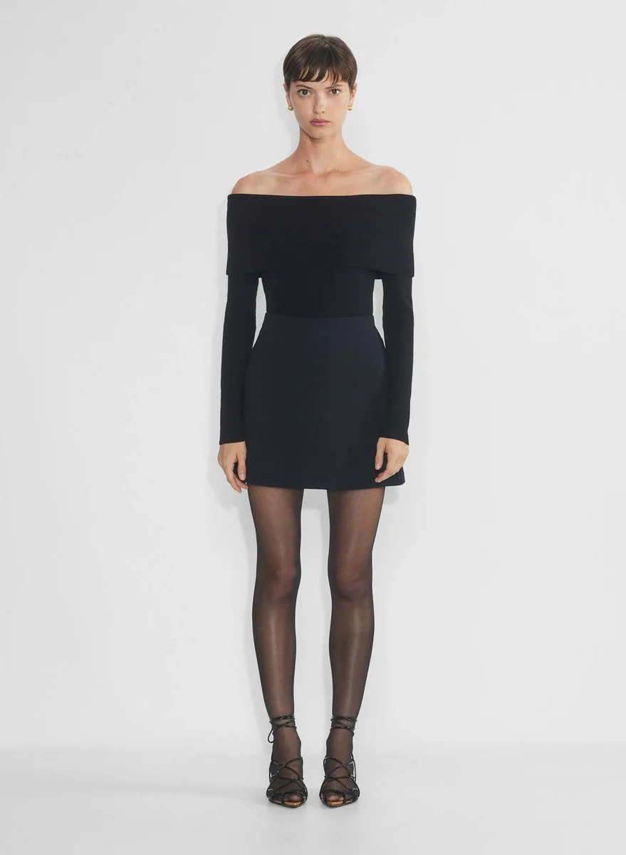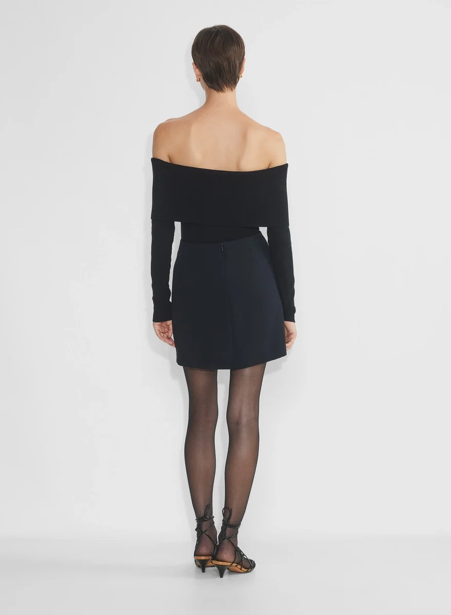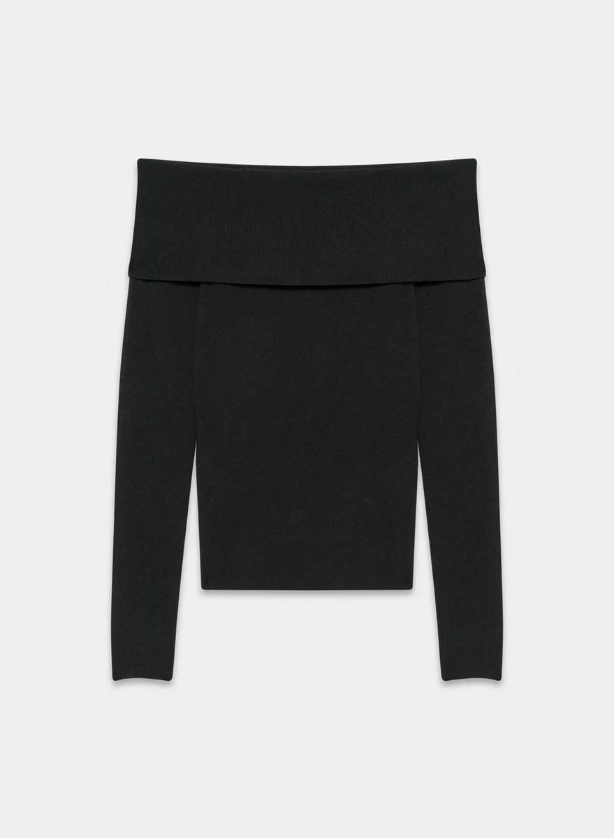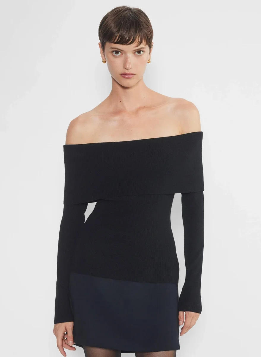 This is an off-the-shoulder sweater with a slim fit and fully fashioned construction. It’s made with Wonder Yarn — the lightweight yarn that lives up to its name. This peachy soft yarn offers the all-season warmth of wool, without the wool. It’s made with LENZING™ ECOVERO™ Viscose — responsibly sourced wood-based fibres produced through a process that reduces impact on forests, biodiversity and water supply. This sweater is constructed using a Half Cardigan stitch with vertical ribs for a textural look and feel.