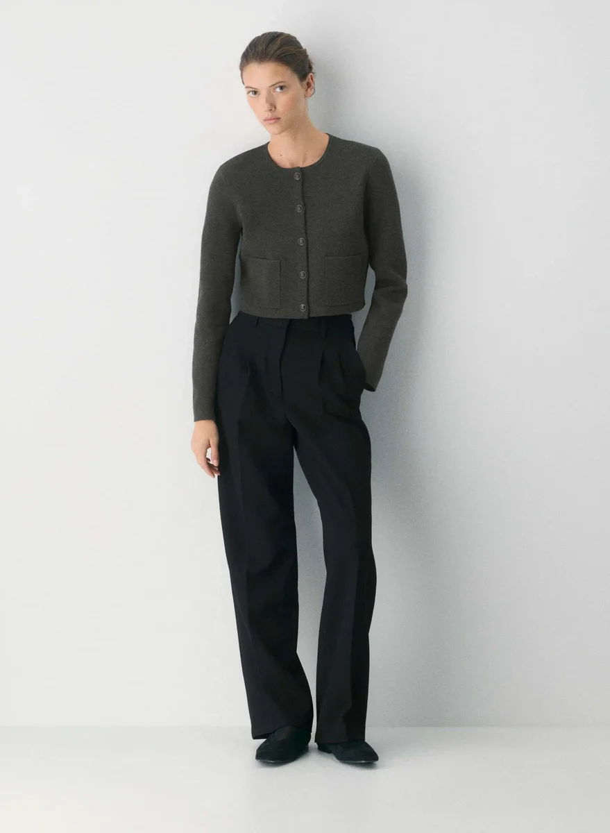 This is a crewneck cardigan with patch pockets and a classic fit. It’s knit with Wonder Yarn — the lightweight yarn that lives up to its name. This fabric offers the peachy softness of wool, without the wool. It’s made with LENZING™ ECOVERO™ Viscose. This garment is constructed using a Full Milano stitch with a double-layer structure for a flat, dense feel.