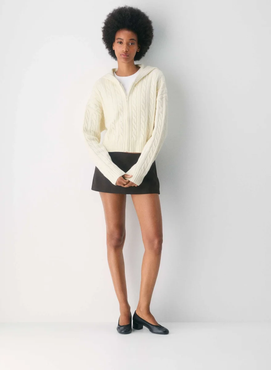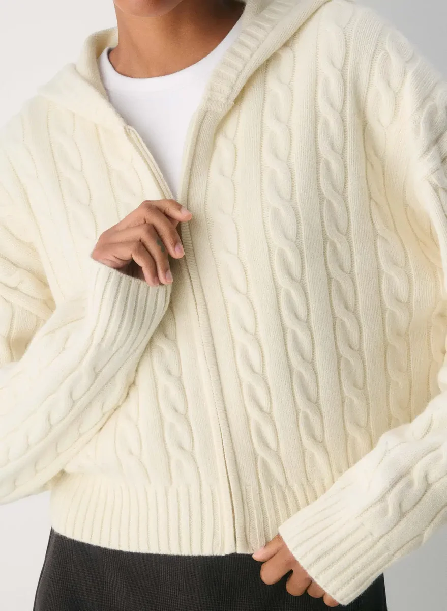 A hoodie with the soul of a cardiganThis is a zip hoodie with fully fashioned construction. It’s made from Infiniti Wool — responsibly sourced extra-fine merino wool, recycled nylon and organic cotton yarn that’s naturally warm with an infinitely wearable, soft feel. This garment is constructed using our Preppy Cable stitch in a unique repeated pattern for a three-dimensional look and texture.