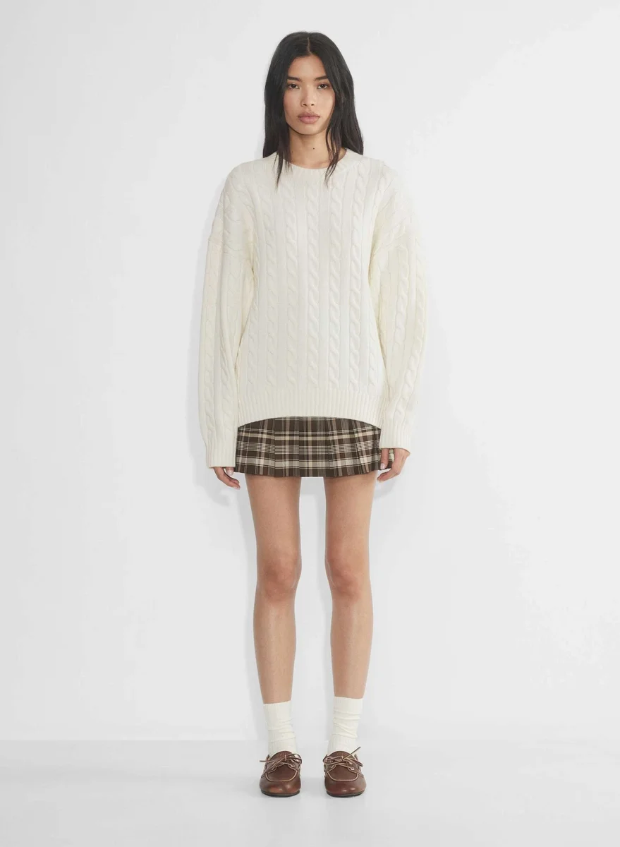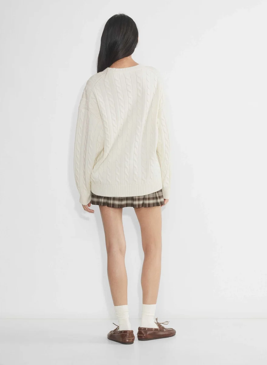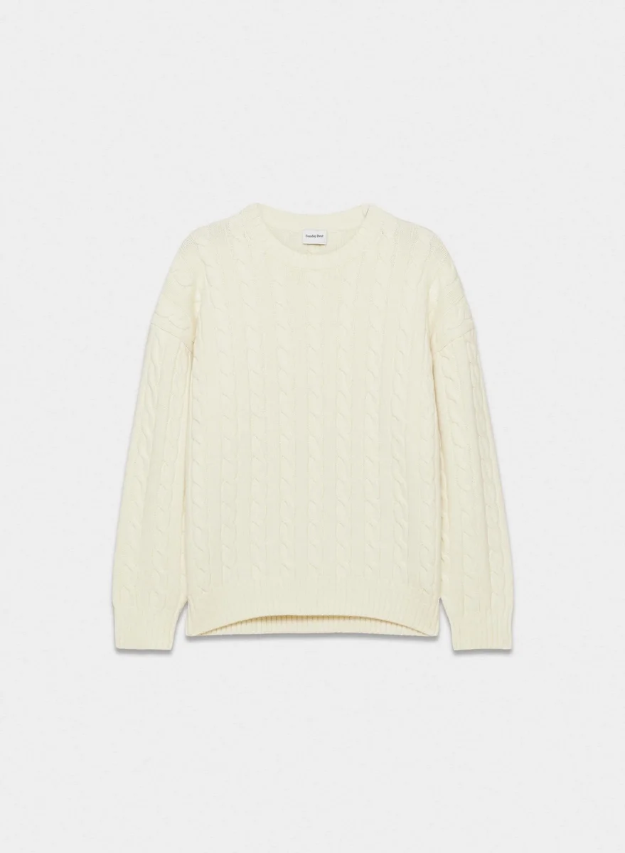 The epitome of the Big Comfy Sweater. This is a crewneck sweater with dropped shoulders, ribbed trim and fully fashioned construction. It’s made with Infiniti Wool — responsibly sourced extra-fine merino wool, recycled nylon and organic cotton yarn that’s naturally warm with an infinitely wearable, soft feel. This version is constructed using our Preppy Cable stitch in a unique repeated pattern for a three-dimensional look and texture.