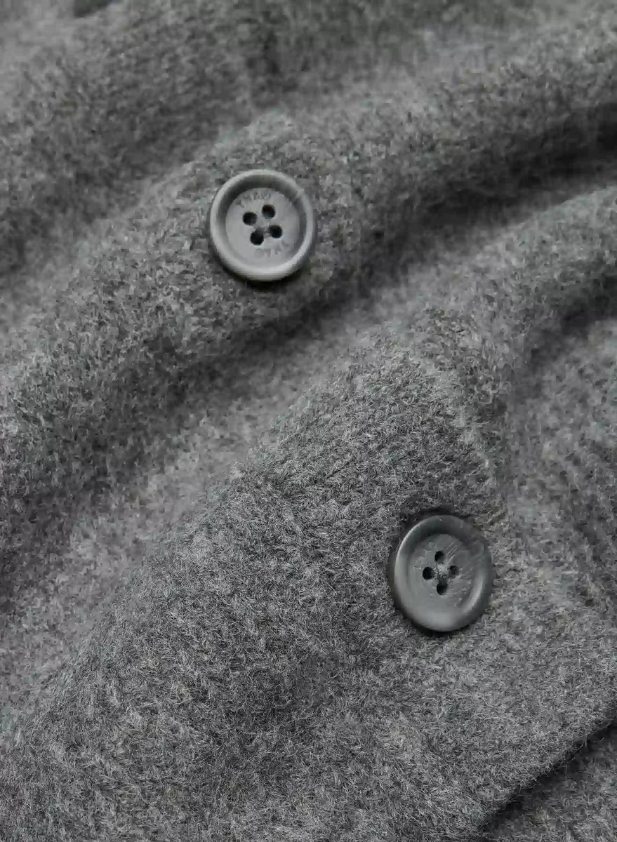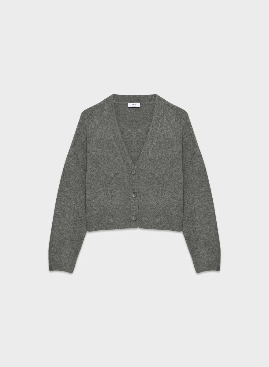 Sometimes a fuzzy little cardigan is all you needThis is a fully fashioned V-neck cardigan with raglan sleeves. It’s made with Whipped Yarn — soft, airy yarn with a fuzzy, cloud-like texture and cozy feel. This version is constructed with a Jersey stitch for a soft drape and a smooth, flat feel.