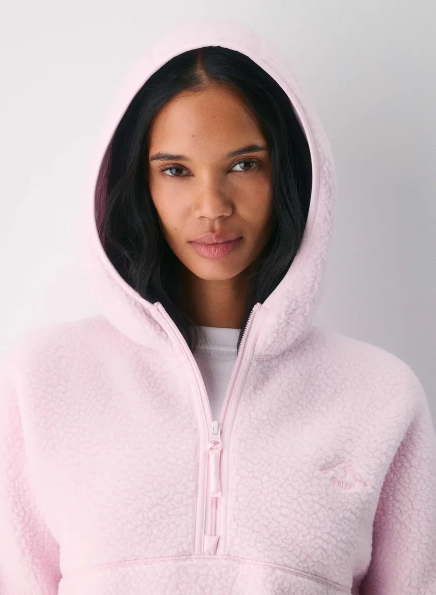 Brb, cocooning This is a 1/2-zip hoodie with zip-closure hand pockets. It’s made with Polartec® Thermal Pro™ — breathable thermal fleece with a shaggy texture for weightless warmth and long-lasting comfort. This fabric is made with 100% recycled polyester.