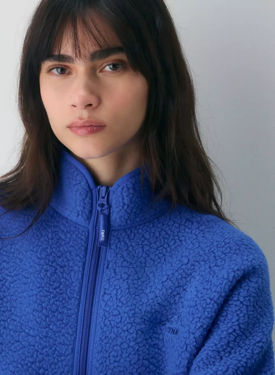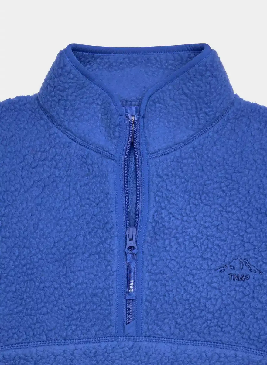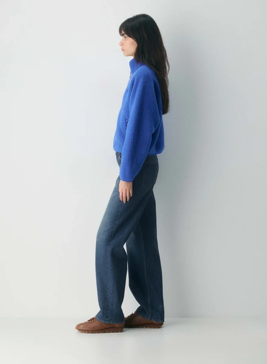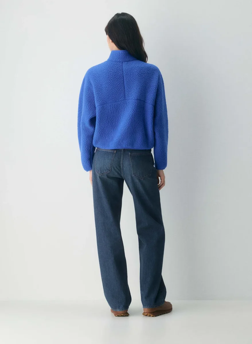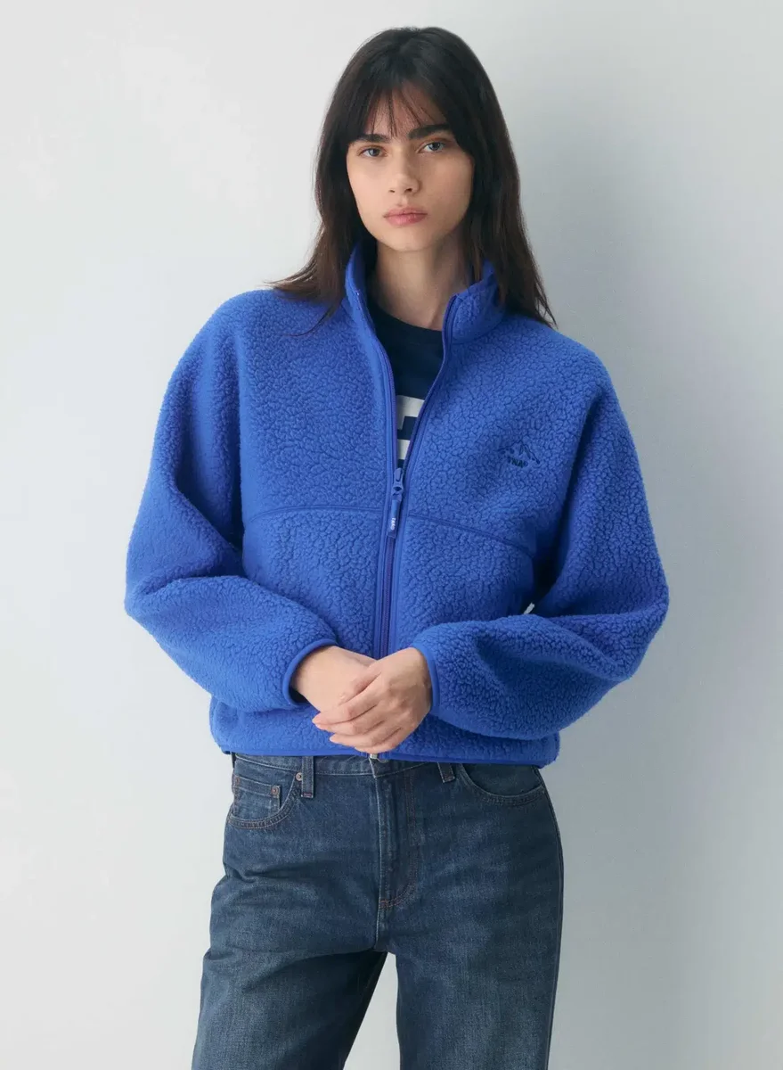 This is a mockneck zip-up with zip-closure hand pockets. It’s made with Polartec® Thermal Pro™ — breathable thermal fleece with a shaggy texture for weightless warmth and long-lasting comfort. This fabric is made with 100% recycled polyester.