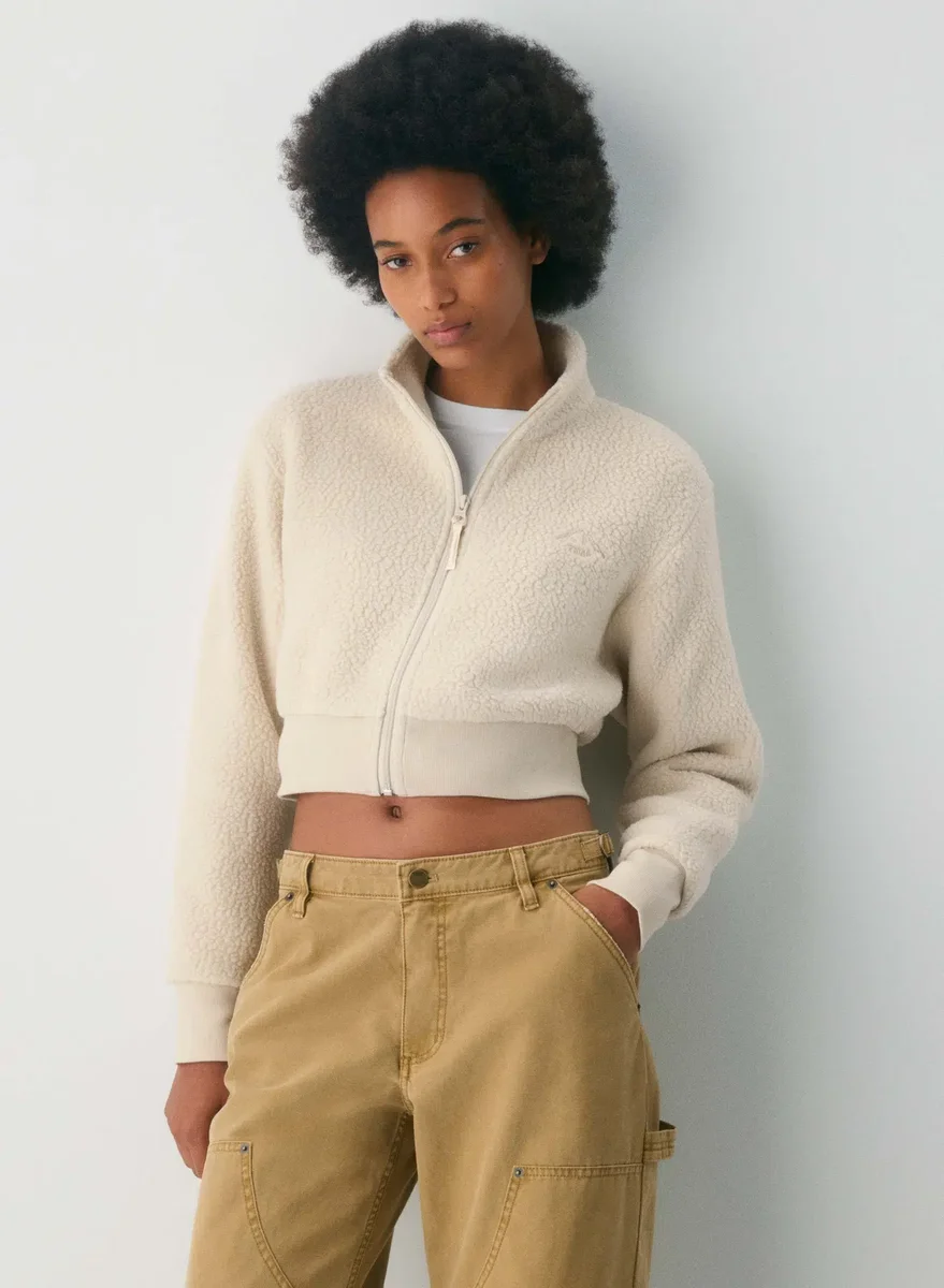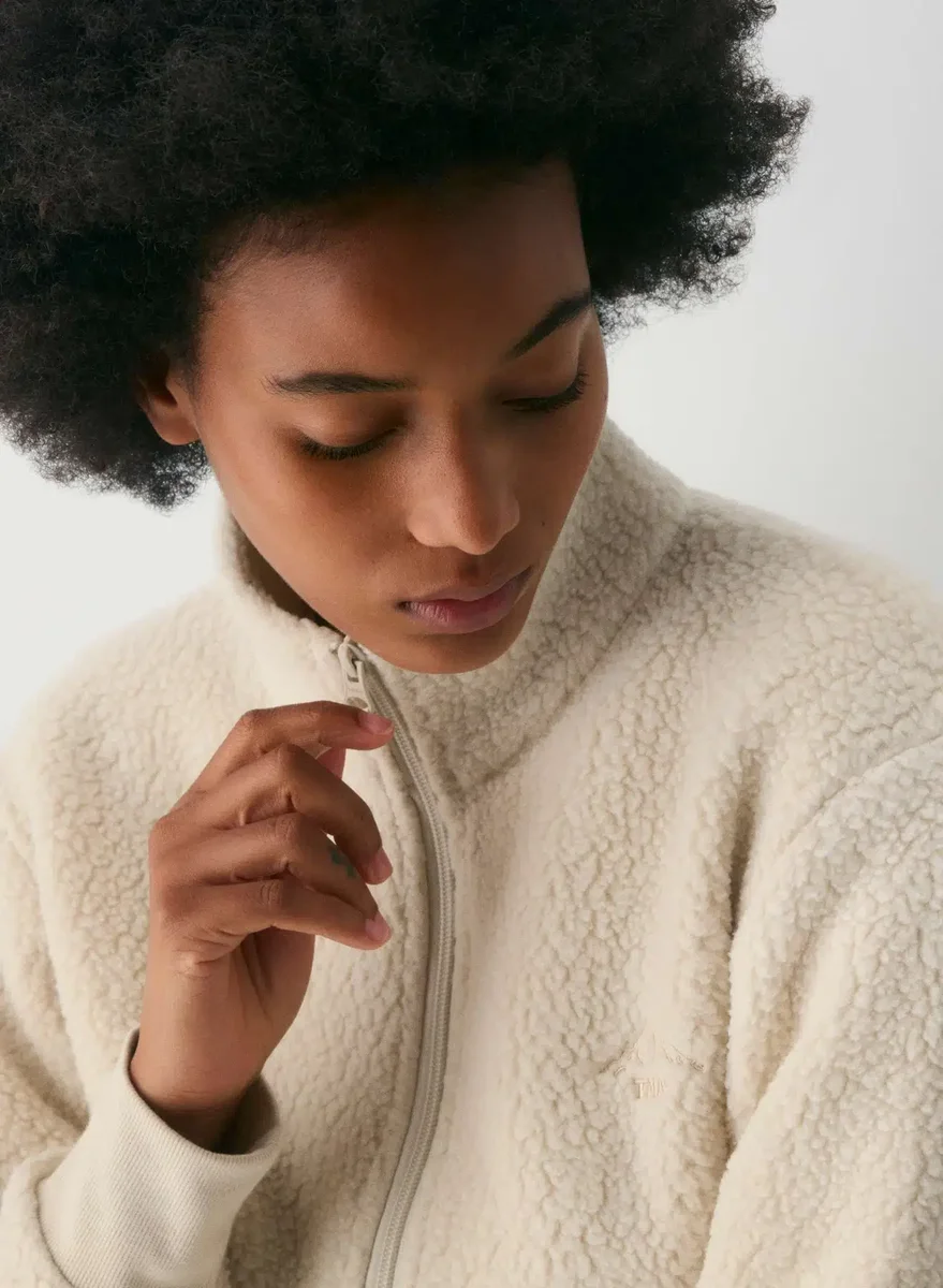 Cropped but cozyThis is a mockneck zip-up with ribbed trim and a classic fit. It’s made with Polartec® Thermal Pro™ — breathable thermal fleece with a shaggy texture for weightless warmth and long-lasting comfort. This fabric is made with 100% recycled polyester.