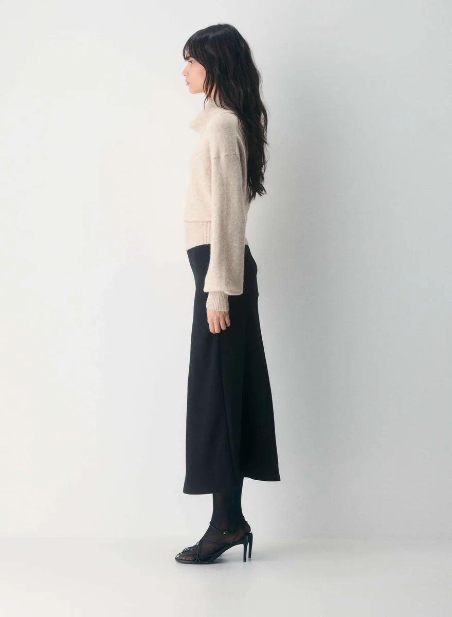 An even sweeter sweaterThis is a turtleneck sweater with a classic fit and a wide, ribbed waistband. It’s knit with SoftSpoke™ — plush, spongey yarn that is made with merino wool and cashmere for superior softness. This garment is constructed with a Jersey stitch for a soft drape and a smooth, flat feel.