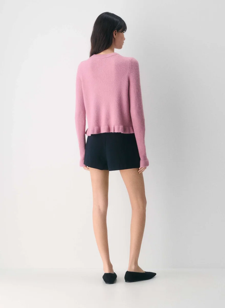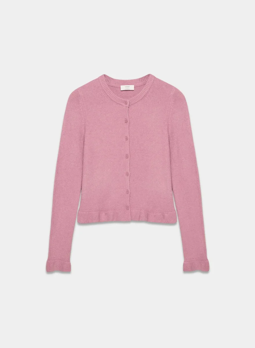 Crewneck cardigan with ruffled hem