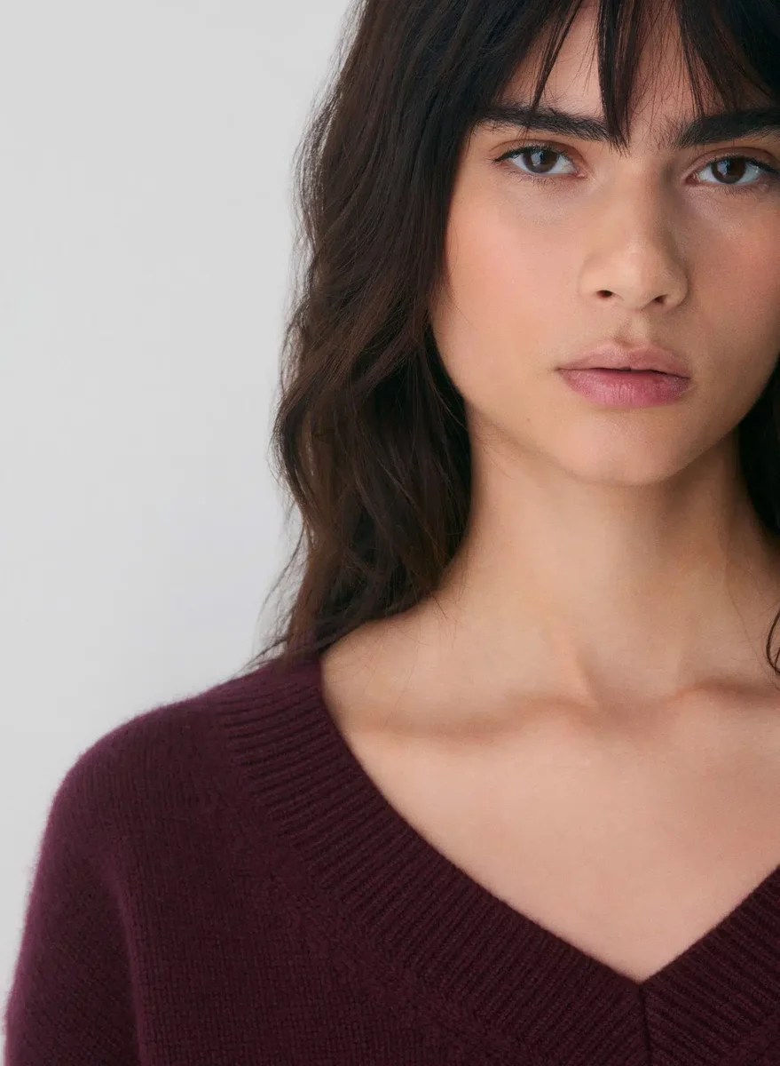 Aren’t you sweetThis is a V-neck sweater with dropped shoulders and a relaxed fit. It’s knit with responsibly sourced extra-fine merino wool with a lofty, cloud-like feel. It’s constructed using a Jersey stitch for a soft drape and a smooth, flat feel.