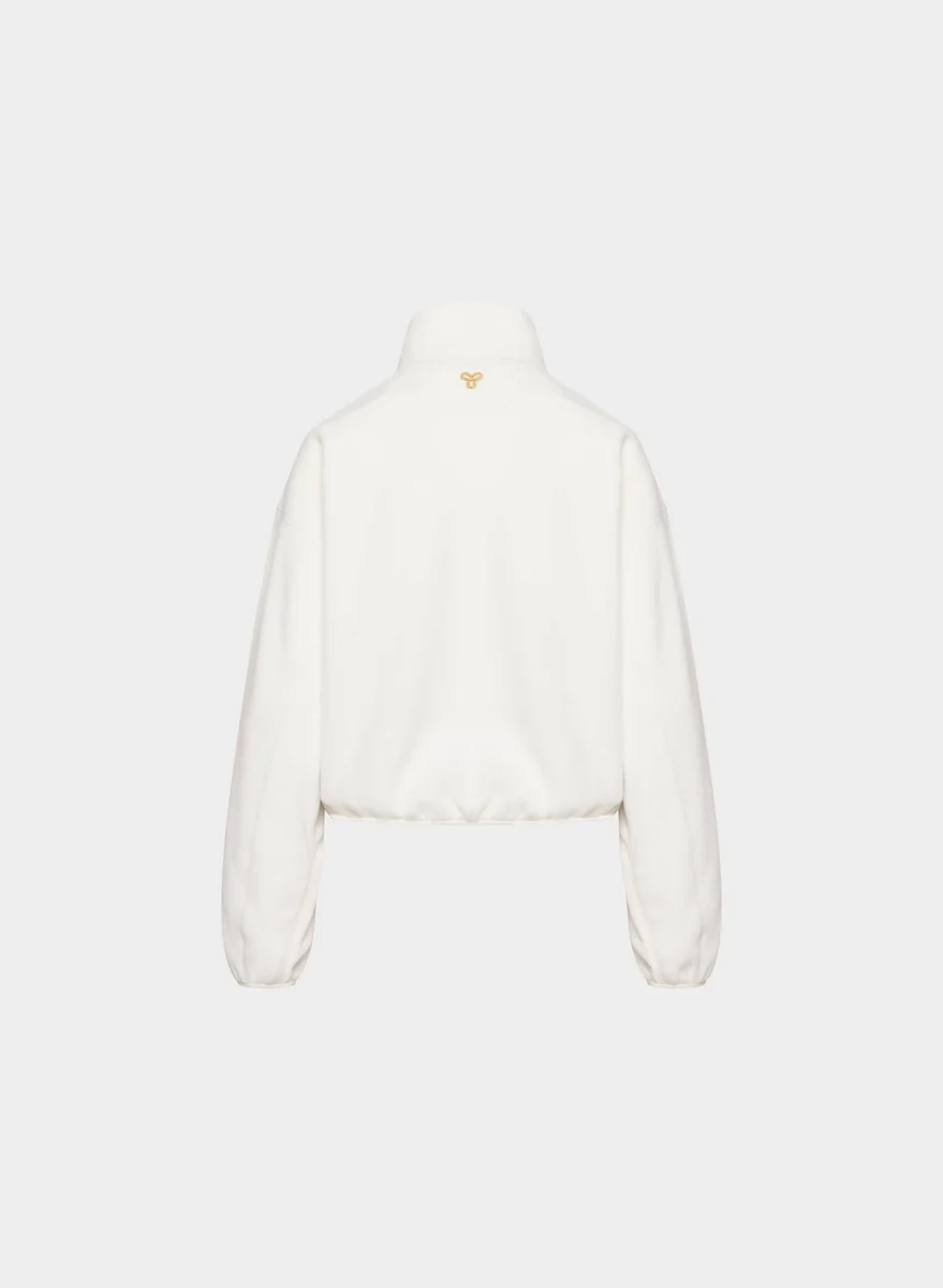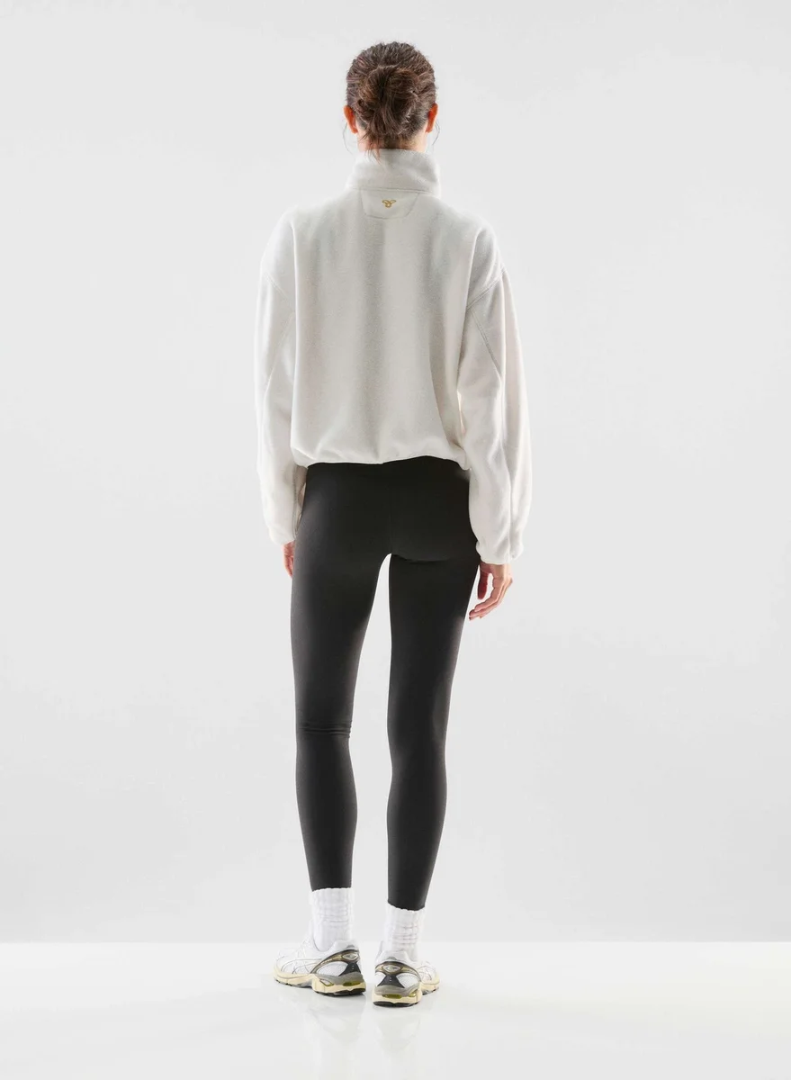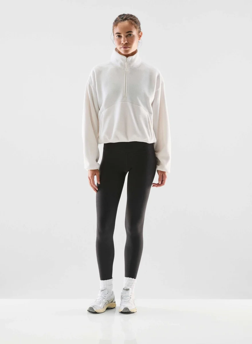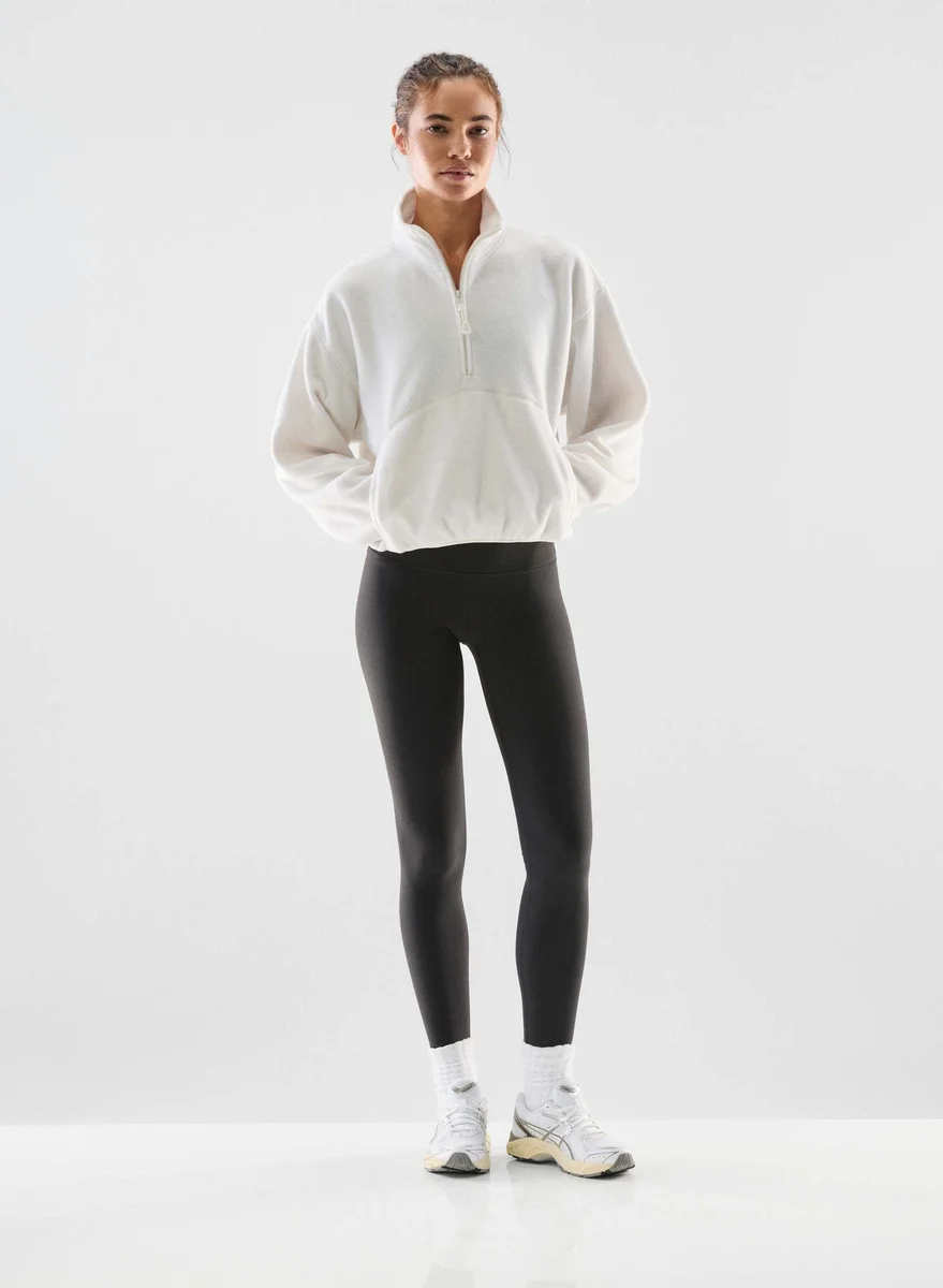 This is an oversized mockneck zip-up with zippered pockets. It’s made with plush, ultra-cozy fleece sourced from a premier Italian mill. Lounge-level soft, for everyday.