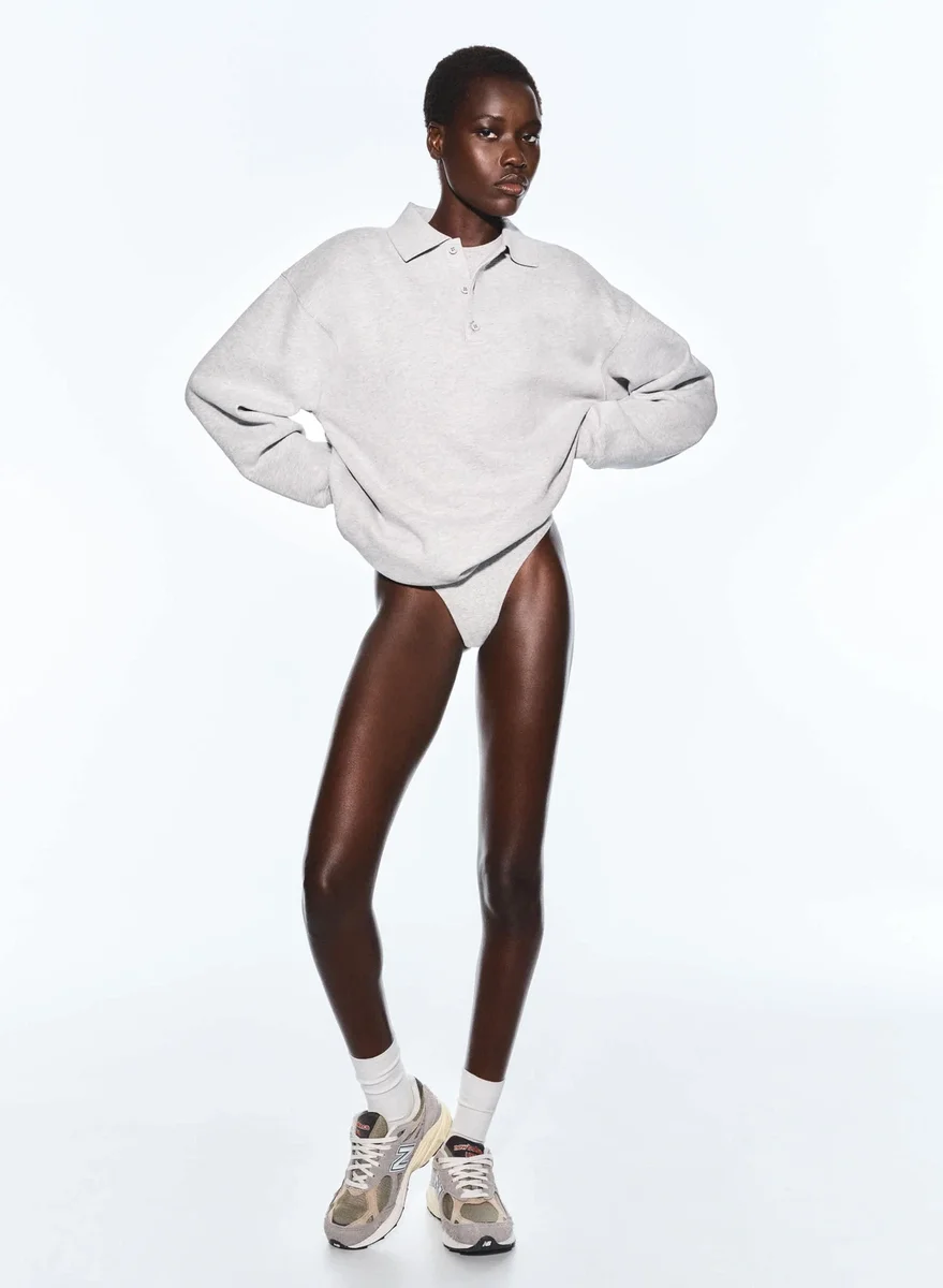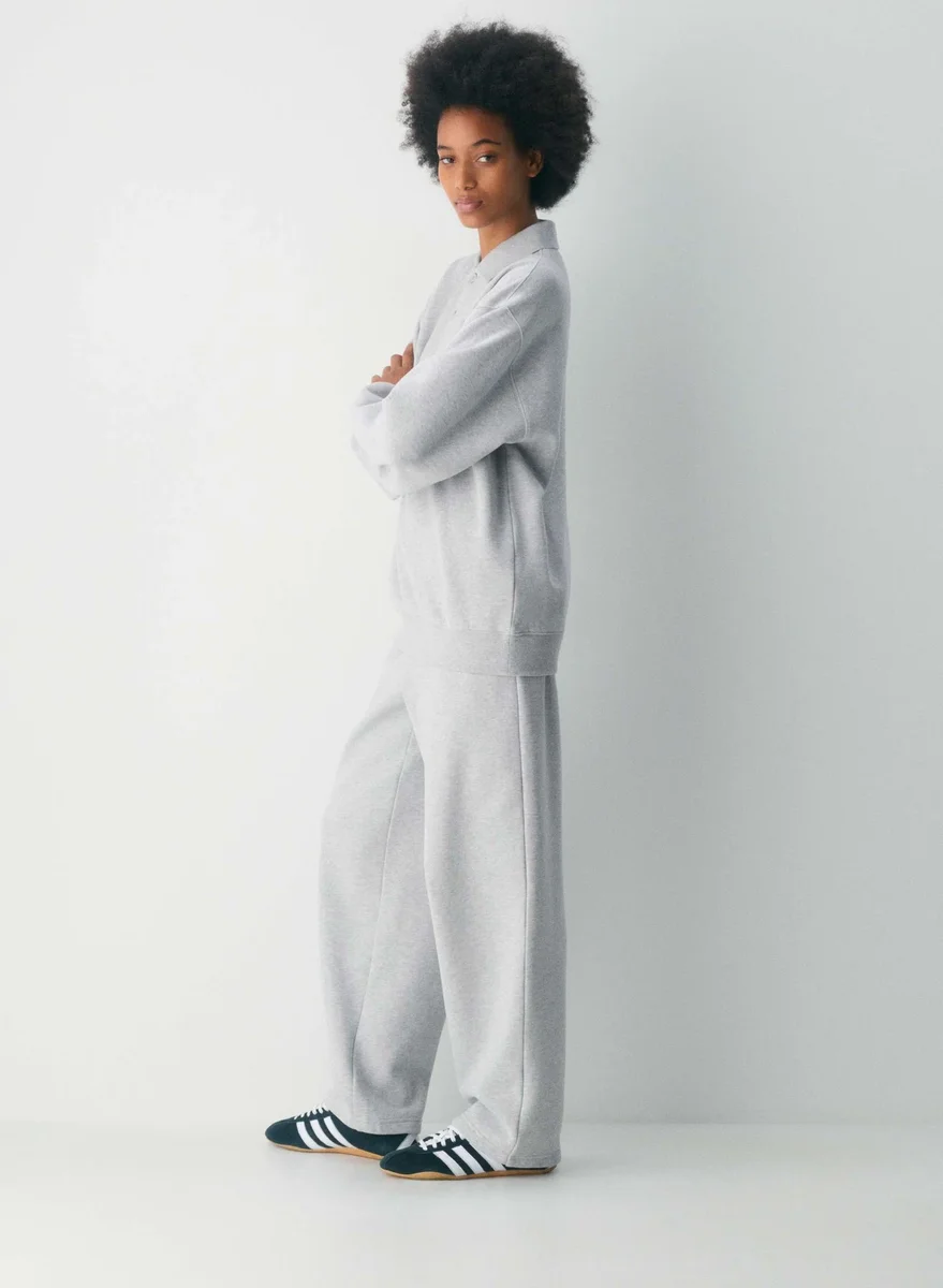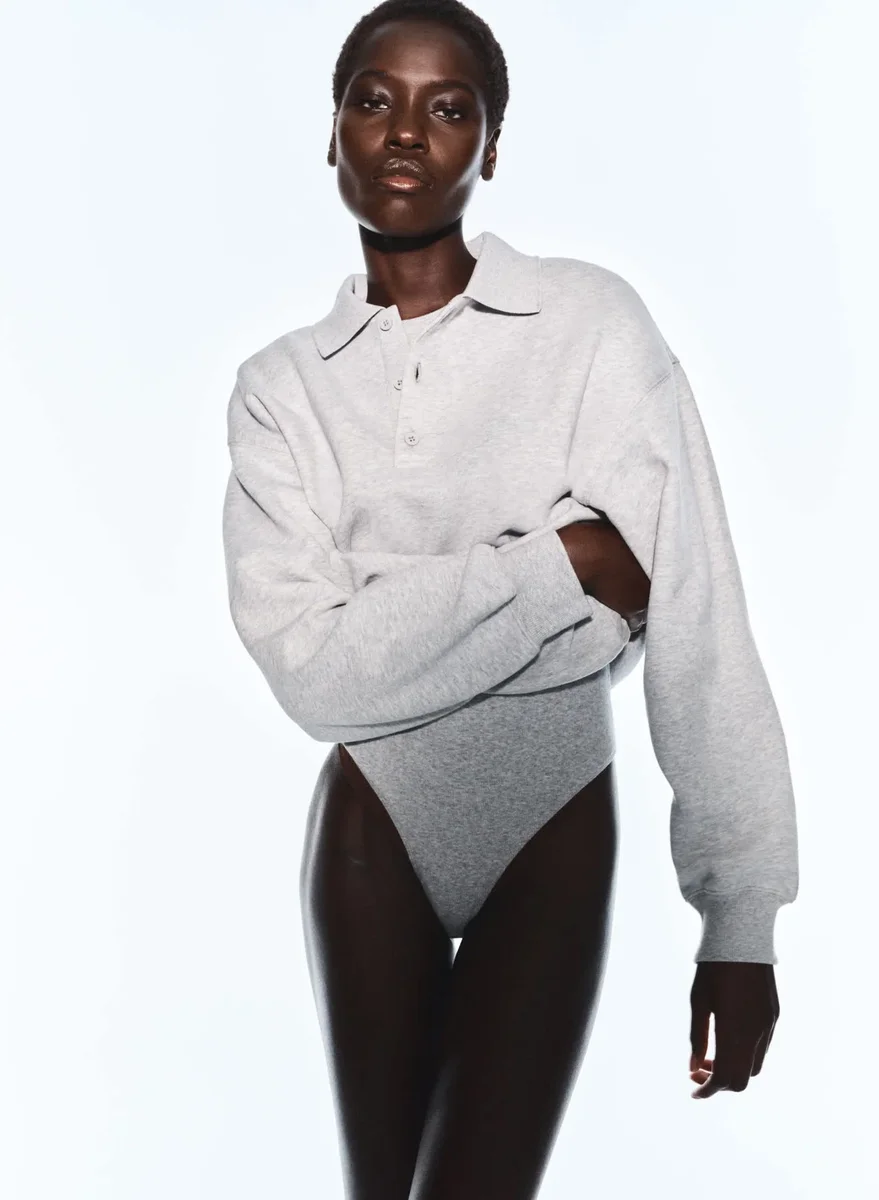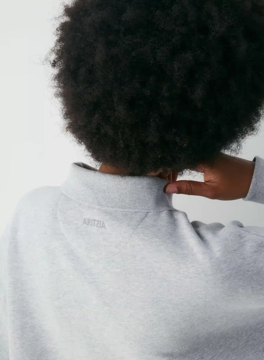 Preppy but comfyThis is a polo sweatshirt with ribbed trim and dropped shoulders. It’s made with Aritzia’s Cozy Sweatfleece — premium midweight fleece famous