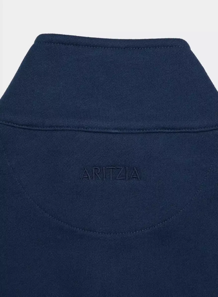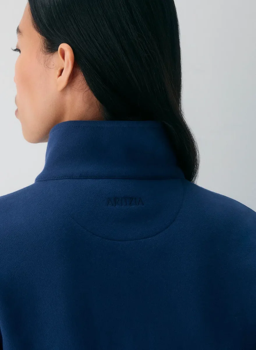 This is a cropped mockneck zip-up with dropped shoulders and ribbed trim. It’s made with Aritzia’s Cozy Sweatfleece — premium midweight fleece famous for its soft-brushed back, sueded face and cloud-nine plush feel. The best kind of cozy.