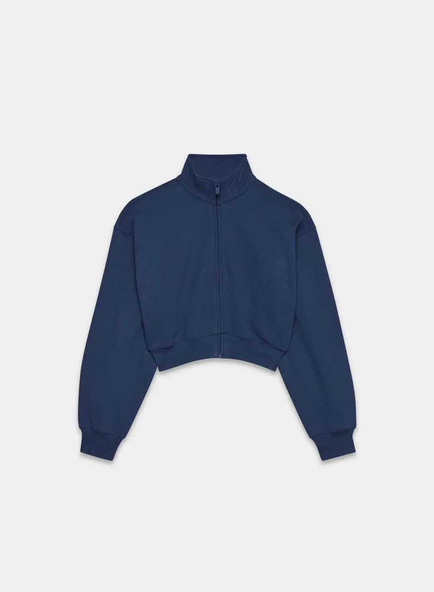 Fan-favourite perfect-fit cropped mockneck zip-up sweatshirt