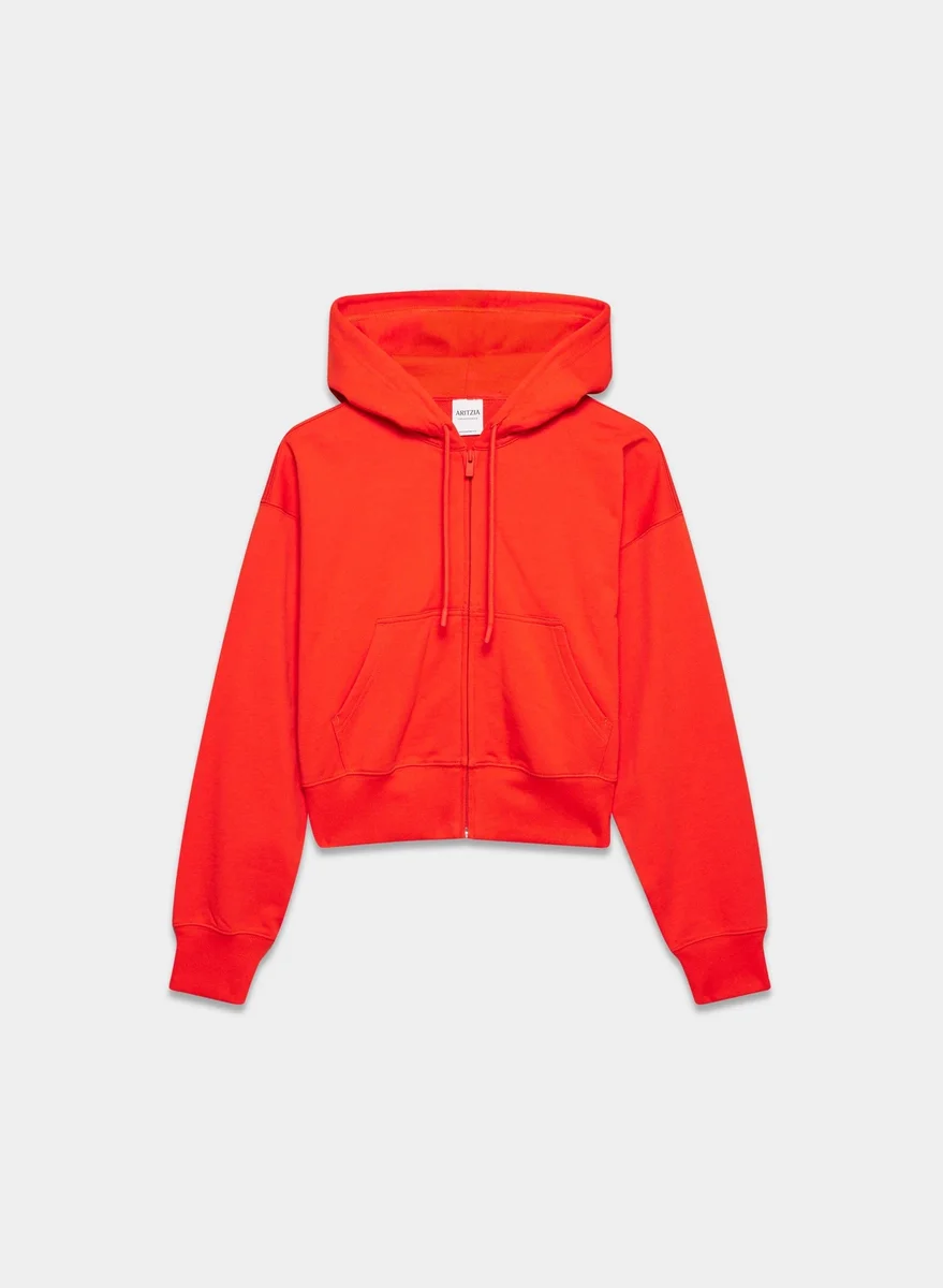Loved for its boxy cut and perfect, almost-cropped length, this is a relaxed zip-up hoodie finished with dropped shoulders and a double-layer hood. It’s made with Aritzia’s Terry Sweatfleece — summer-weight French Terry fleece with a comfy looped interior and a luxurious, cottony soft feel. It’s the gentle breeze of fabrics.