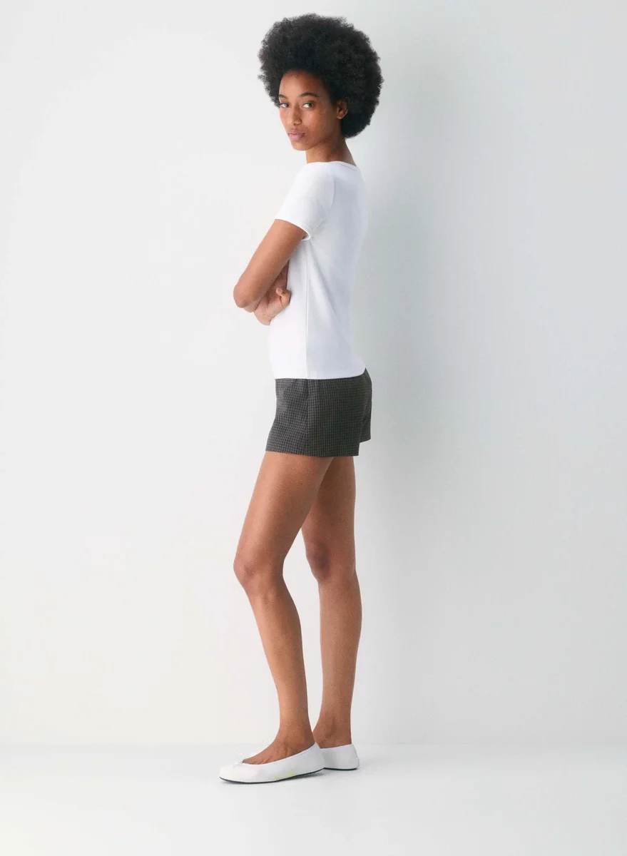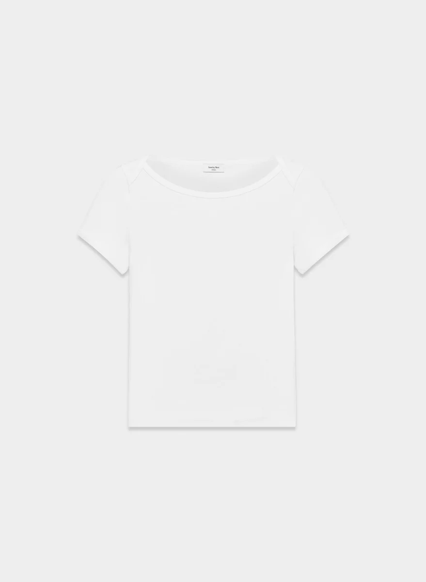 Look like you do balletThis is a boatneck tee with a slim fit. It’s made with BestHug™ — super fine-ribbed fabric that shapes to the body for a cozy, hug-like