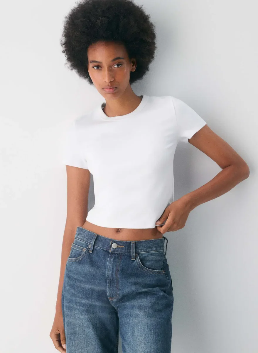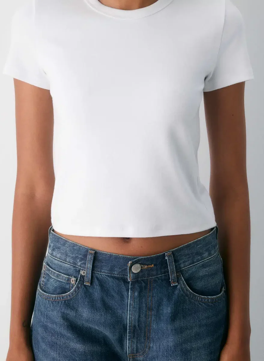 This is a crewneck tee with a slim fit. It’s made with BestHug™ — super fine-ribbed fabric that shapes to the body for a cozy, hug-like feel.