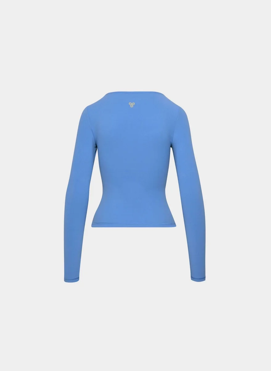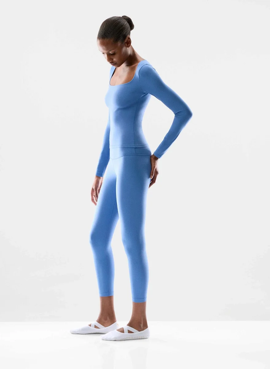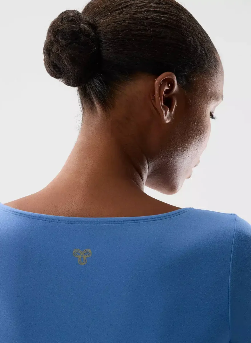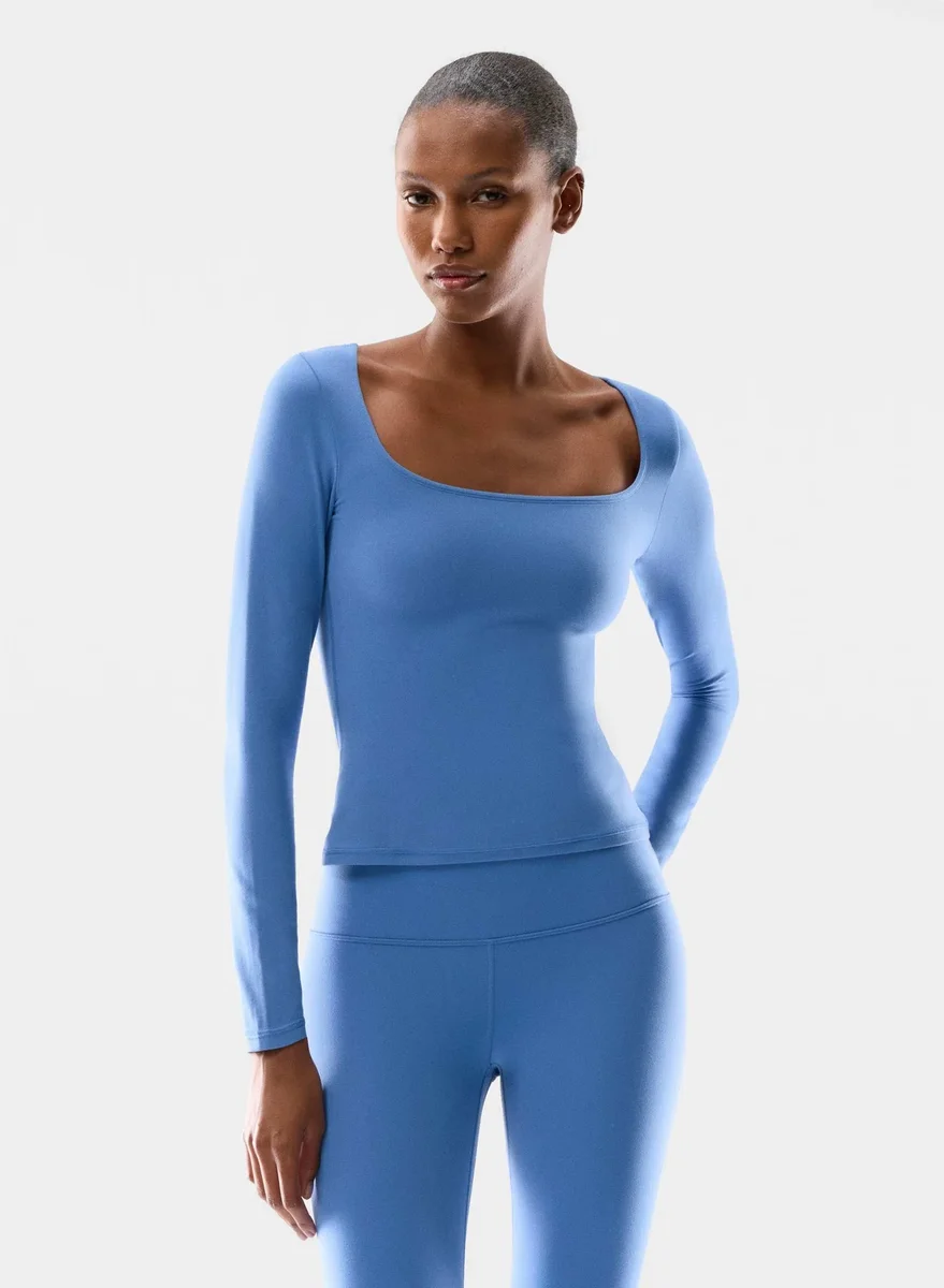 You’ll be the belle of the gymThis is a squareneck longsleeve tee with a tight fit. It’s made with BUTTER — barely there, buttery soft sweat-wicking fabric