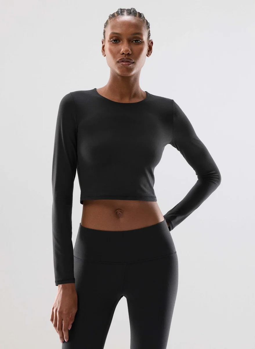 This is a crewneck longsleeve with a tight fit. It’s made with BUTTER — barely there, buttery soft sweat-wicking fabric that shapes to your body for a second-skin feel.