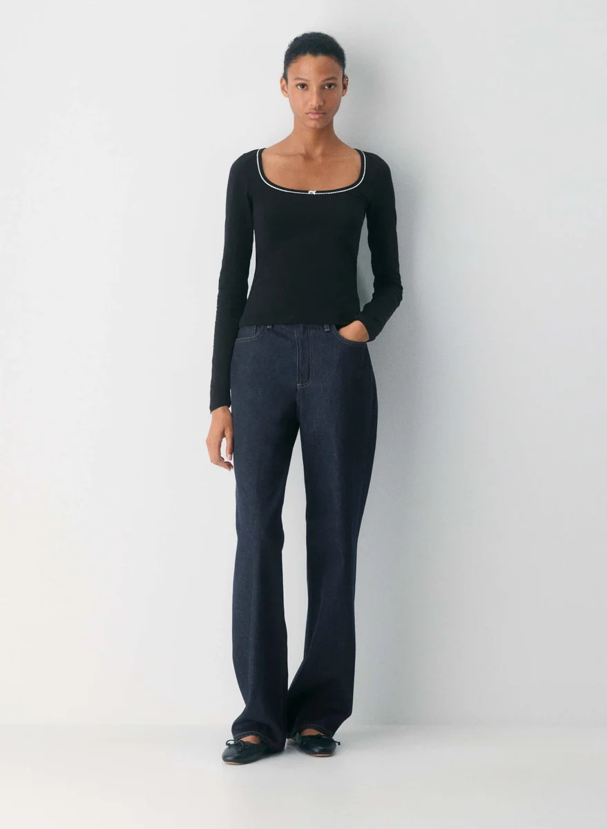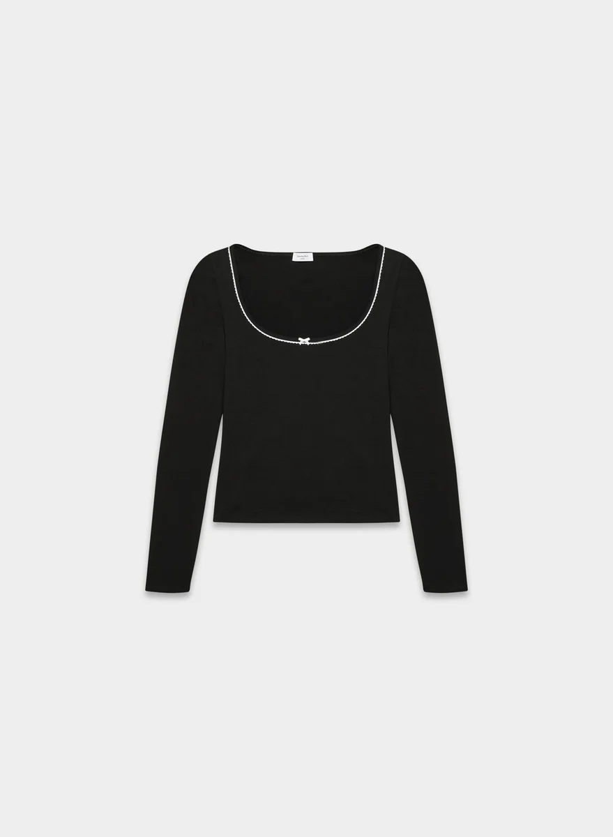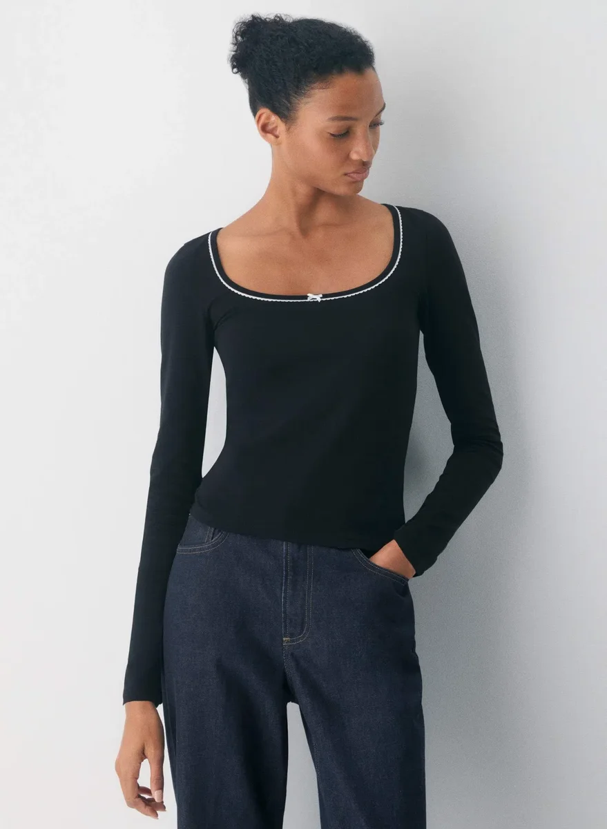 Do you scoopneck?This is a scoopneck longsleeve with a bow detail at the front. It’s made with Chill — a cotton-soft, wear-everyday jersey that feels great against your skin. It’s been recently updated for an even gutsier feel.