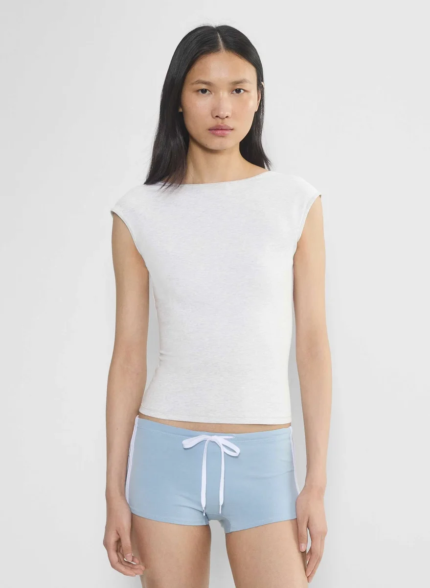 This is a boatneck tee with a low back and slim fit. It’s made with Chill — a cotton-soft, wear-everyday jersey that feels great against your skin. This fabric has been recently updated for an even gutsier feel.