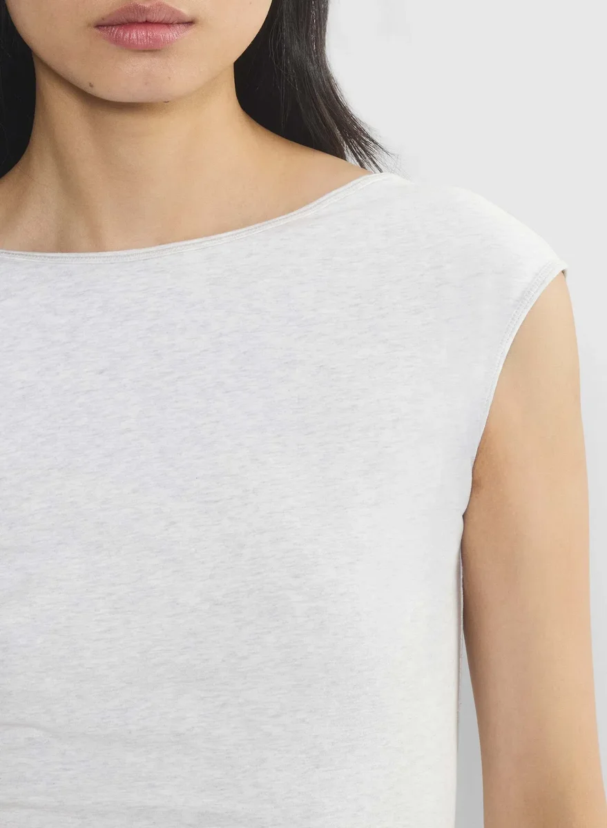 Stretch cotton jersey boatneck tee