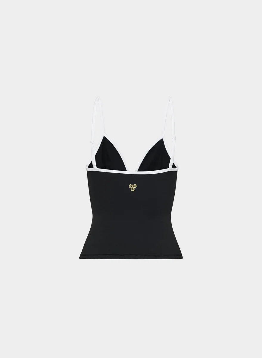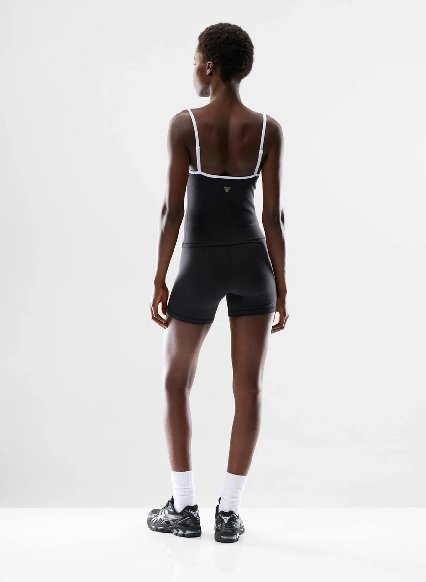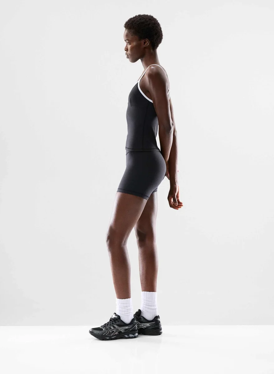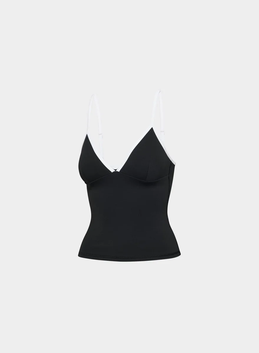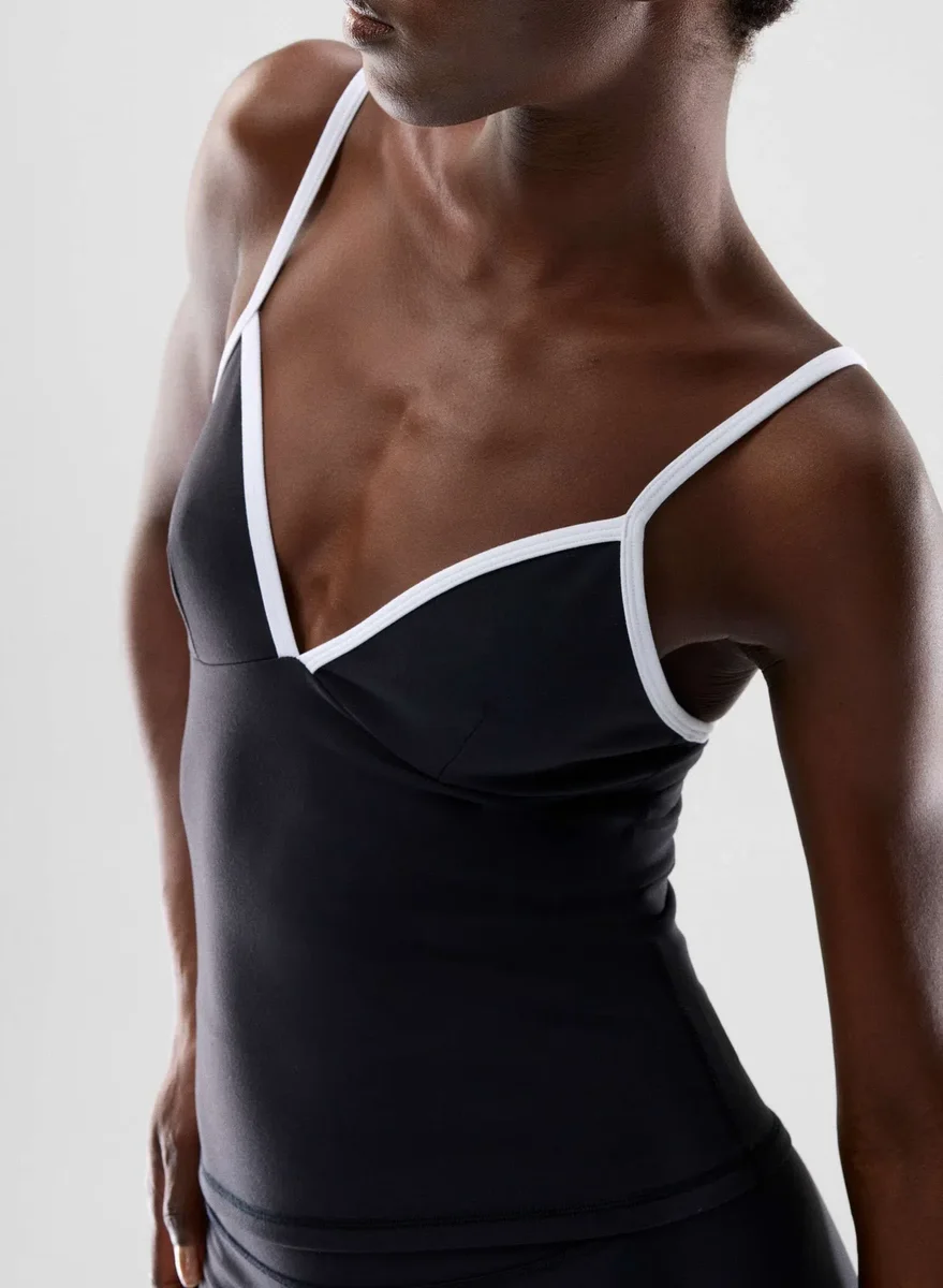 This is a V-neck tank with adjustable straps. It’s made with LIFE — versatile, body-hugging fabric that’s sweat wicking and cottony soft.