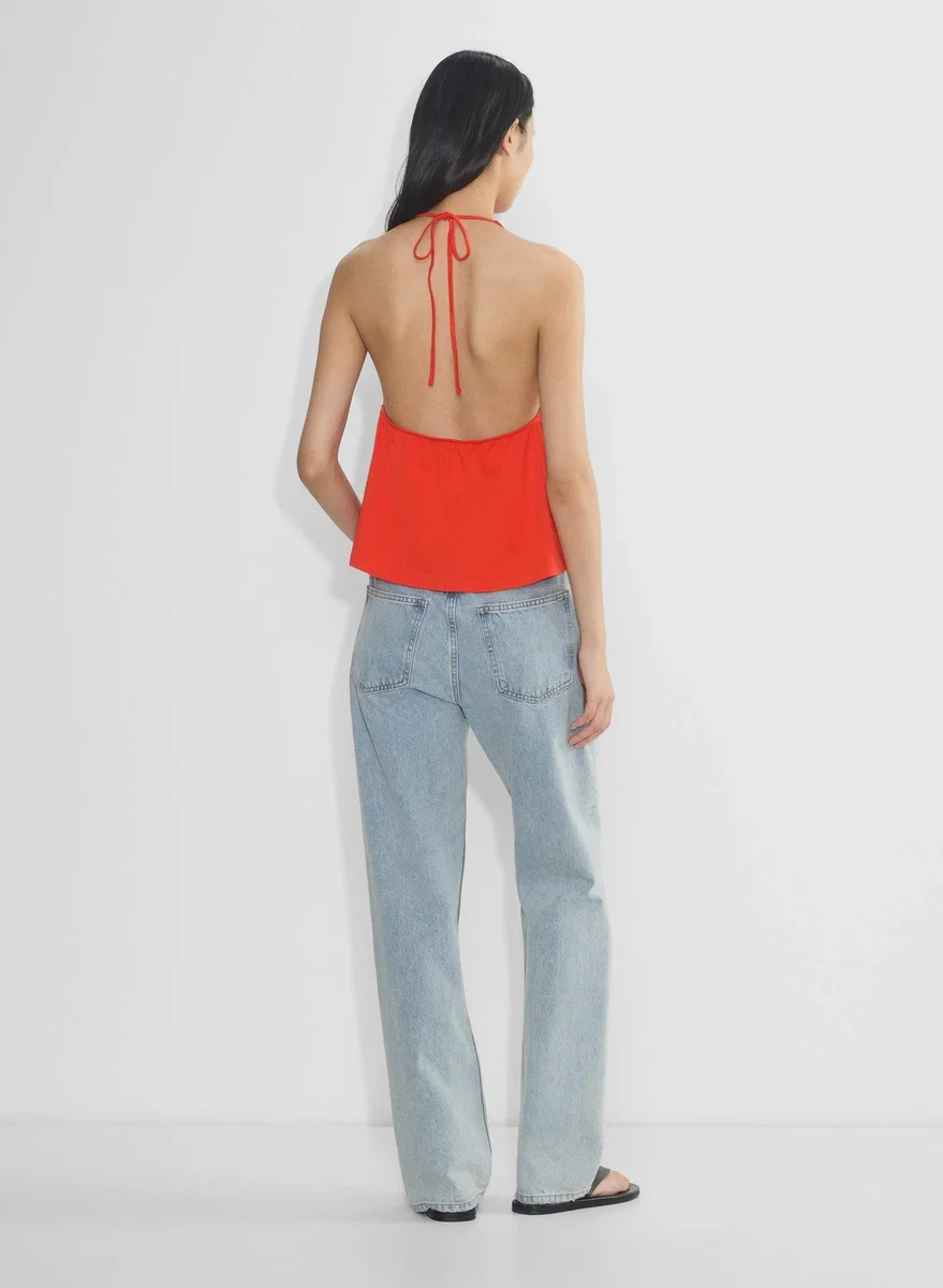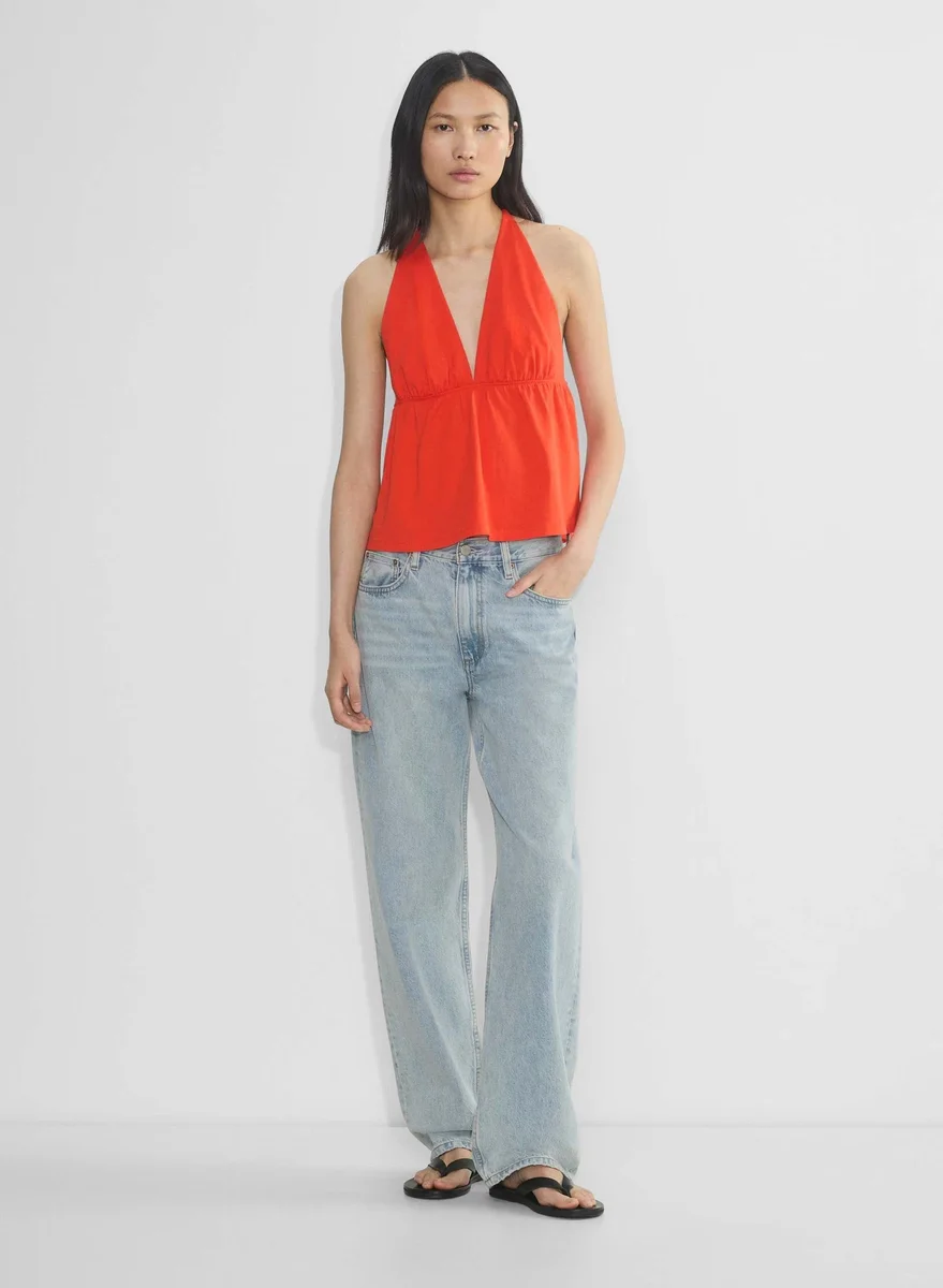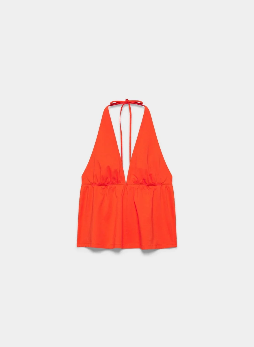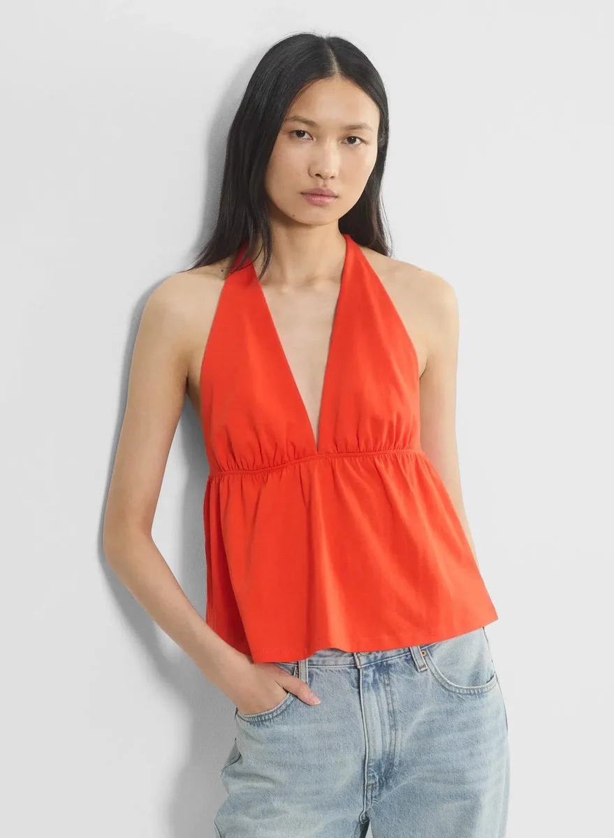 Cotton jersey V-neck halter top