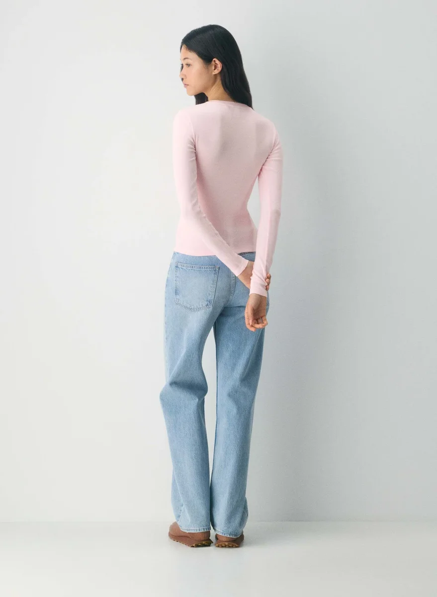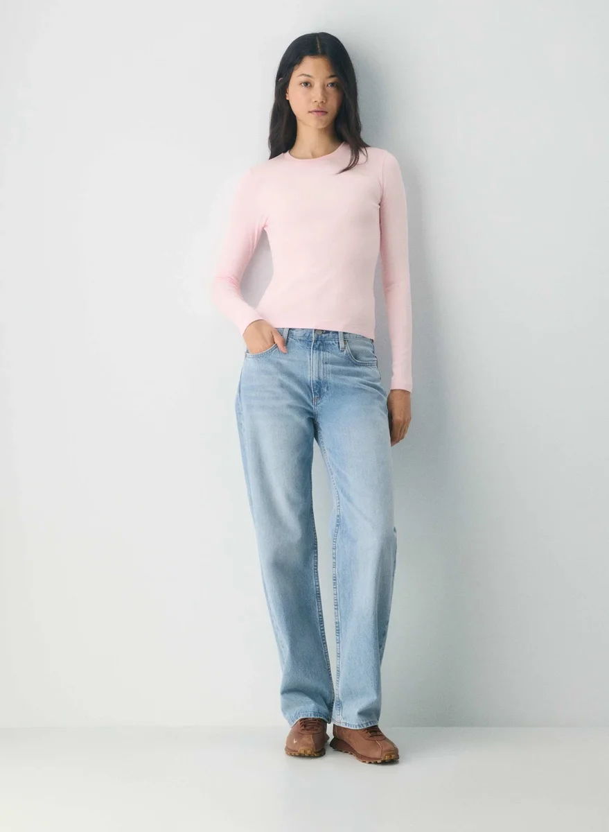 It’s ribbed. This is a go-to crewneck longsleeve designed for a tight fit. It’s made from Aritzia’s HomeStretch™ Rib — body-hugging, stretchy ribbed fabric with a cottony soft feel. For your everyday.