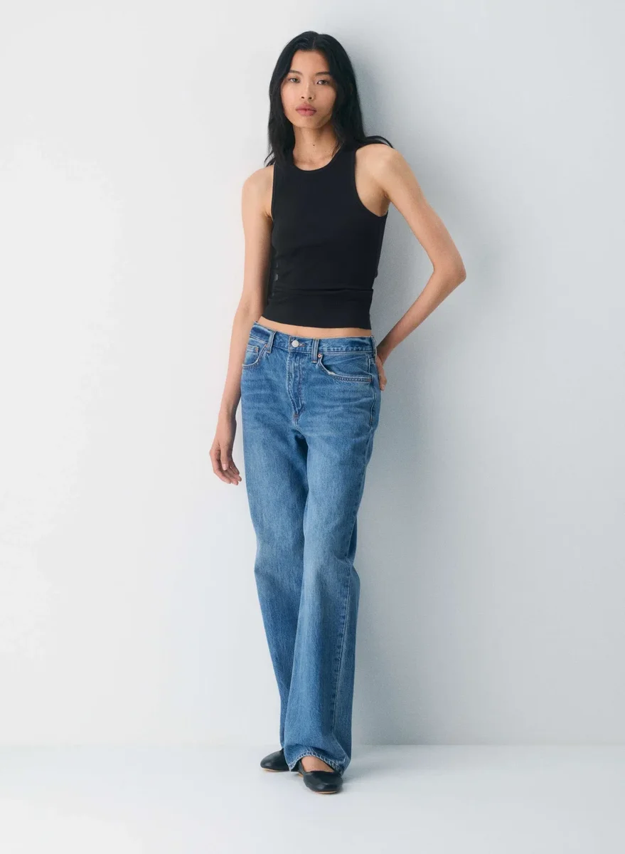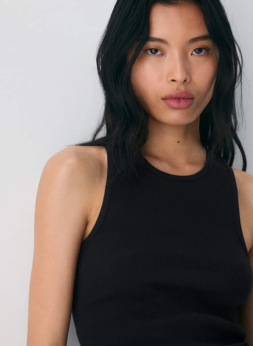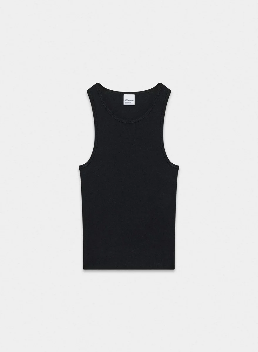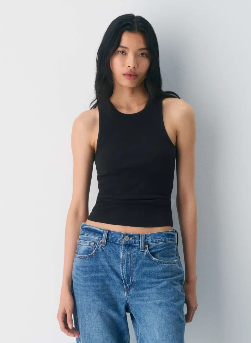 The tank to your jeans This is a racerback tank with a high crew neckline and raw-edge hem. It’s made with HomeStretch™ — body-hugging, stretchy ribbed fabric