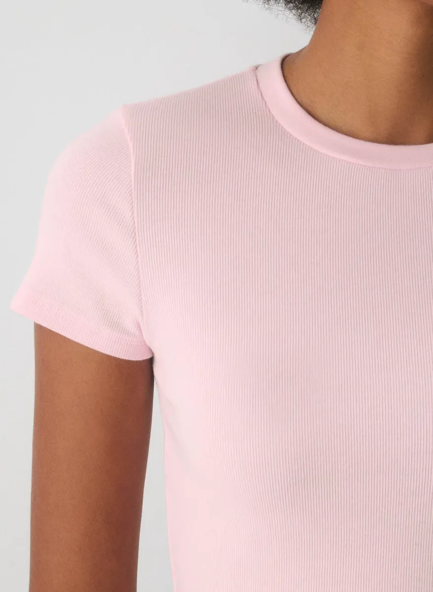 This is a go-to crewneck t-shirt designed to fit tight. It’s made with Aritzia’s HomeStretch™ Rib — body-hugging, stretchy ribbed fabric with a cottony soft feel. For your everyday.