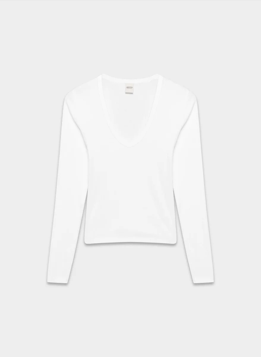 Take the plungeThis is a go-to longsleeve with a deep V-neck and tight fit. It’s made from Aritzia’s HomeStretch™ Rib — body-hugging, stretchy ribbed fabric with a cottony soft feel. For your everyday.