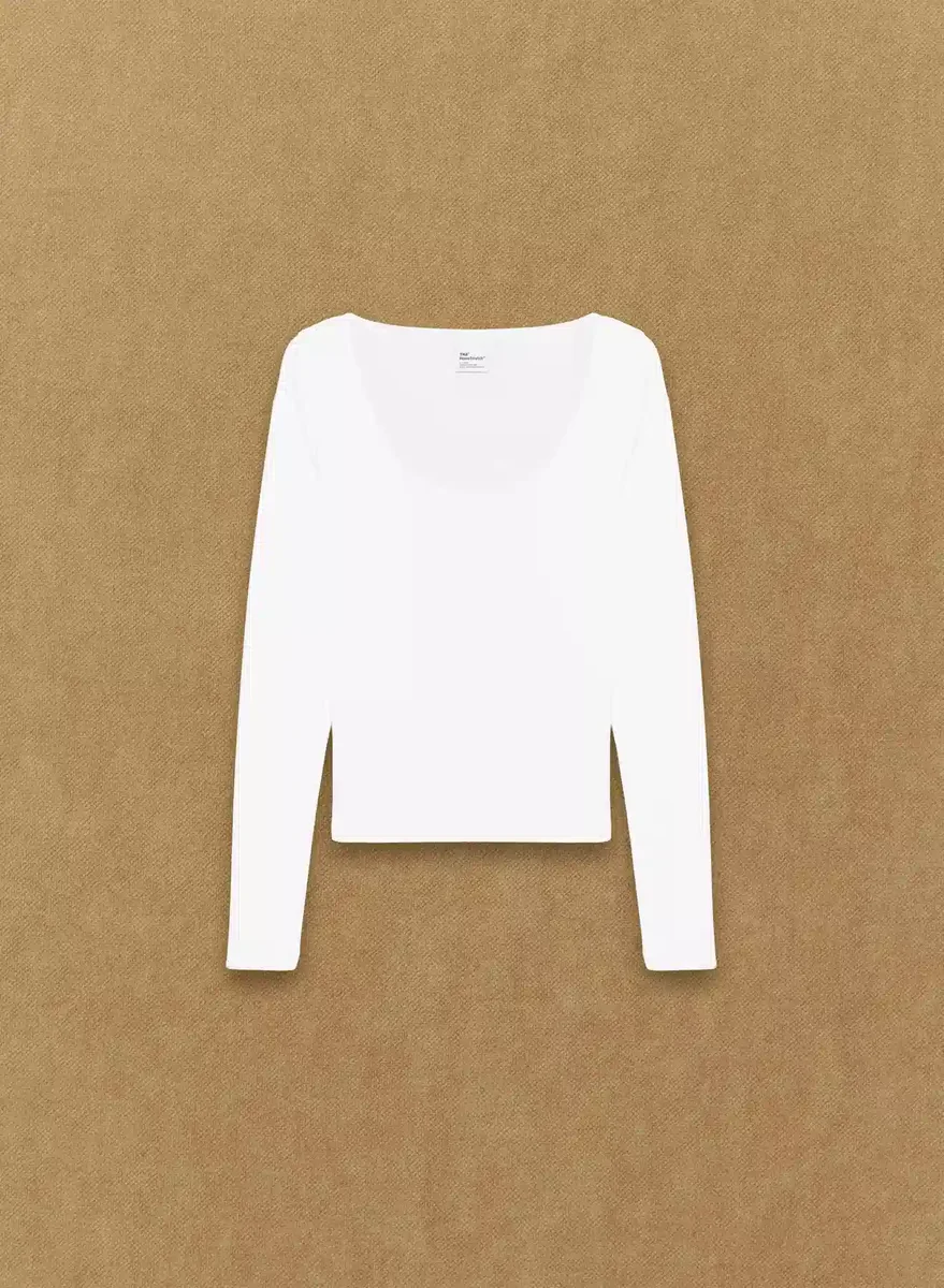 This is a go-to scoopneck longsleeve designed to fit tight. It’s made with Aritzia’s HomeStretch™ Rib — body-hugging, stretchy ribbed fabric with a cottony soft feel. For your everyday.