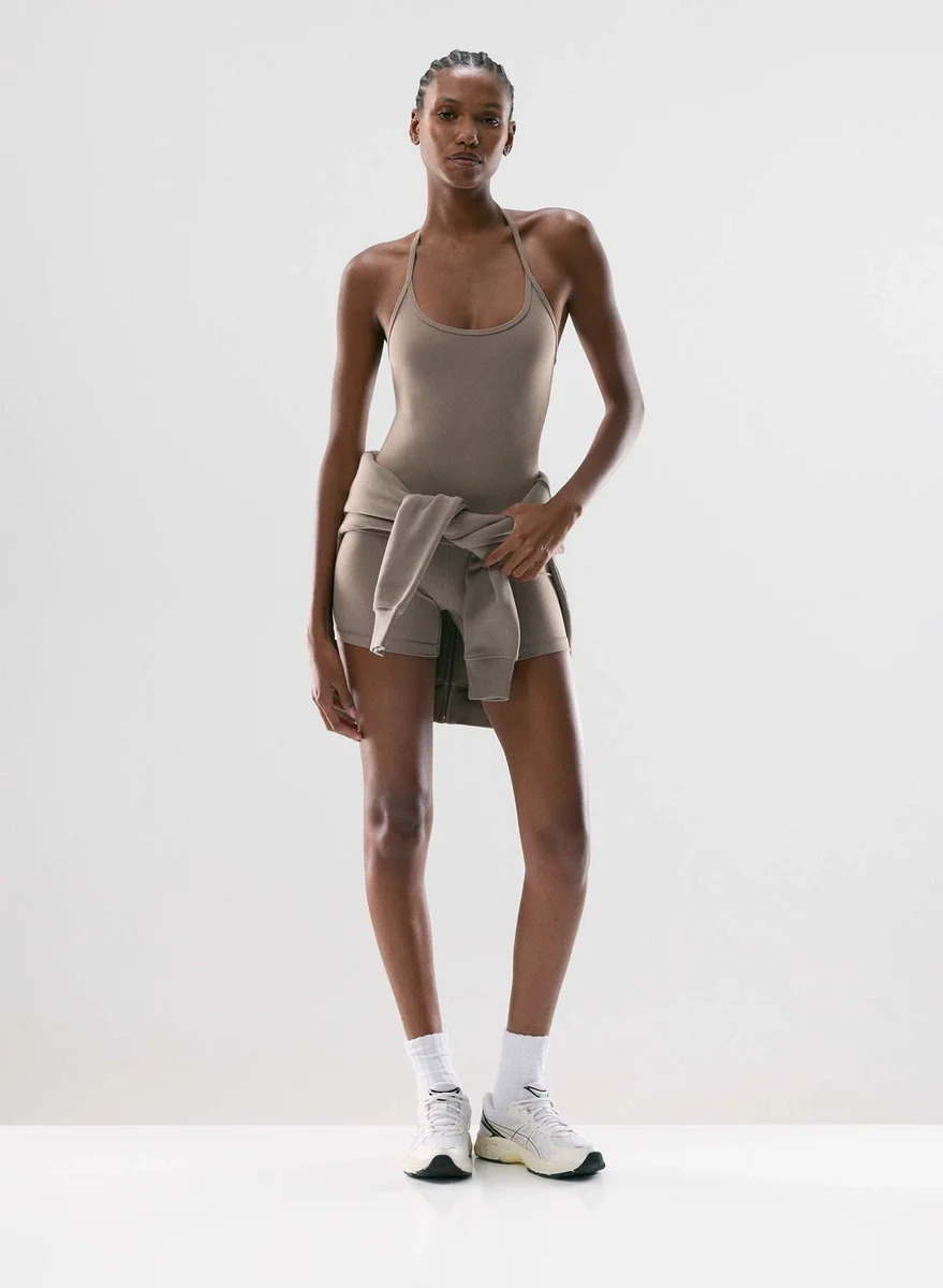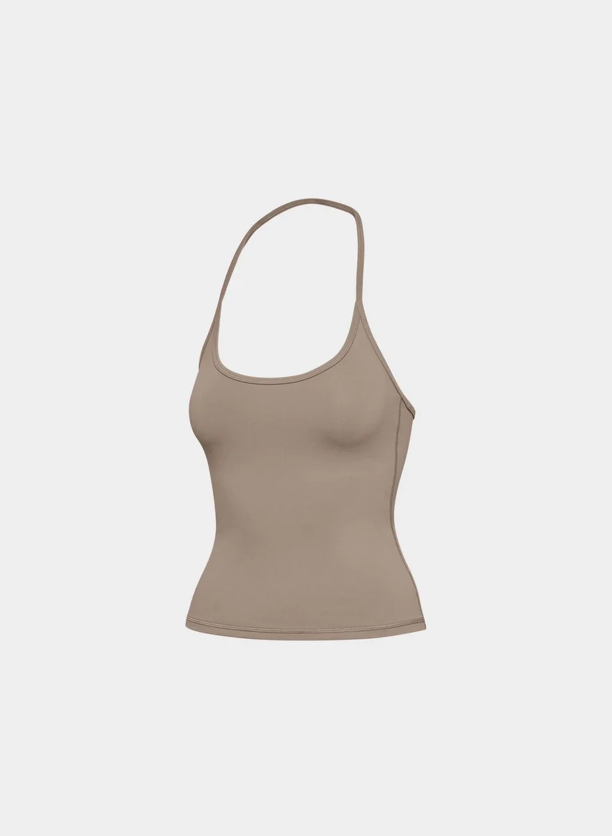 This is a halterneck top. It’s made with LIFE — versatile, body-hugging fabric that’s sweat wicking and cottony soft.