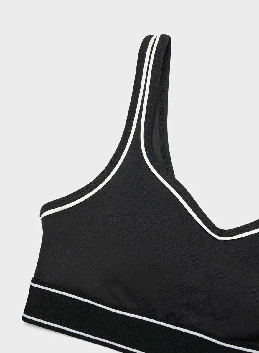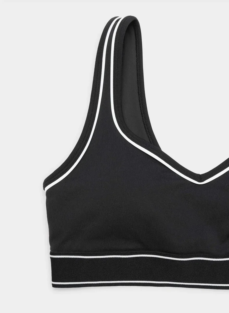 Designed to provide medium support, this is a sports bra with a sweetheart neckline, piping details and removable cups. It’s made with LIFE — a versatile, body-hugging fabric that’s sweat wicking and cottony soft.
