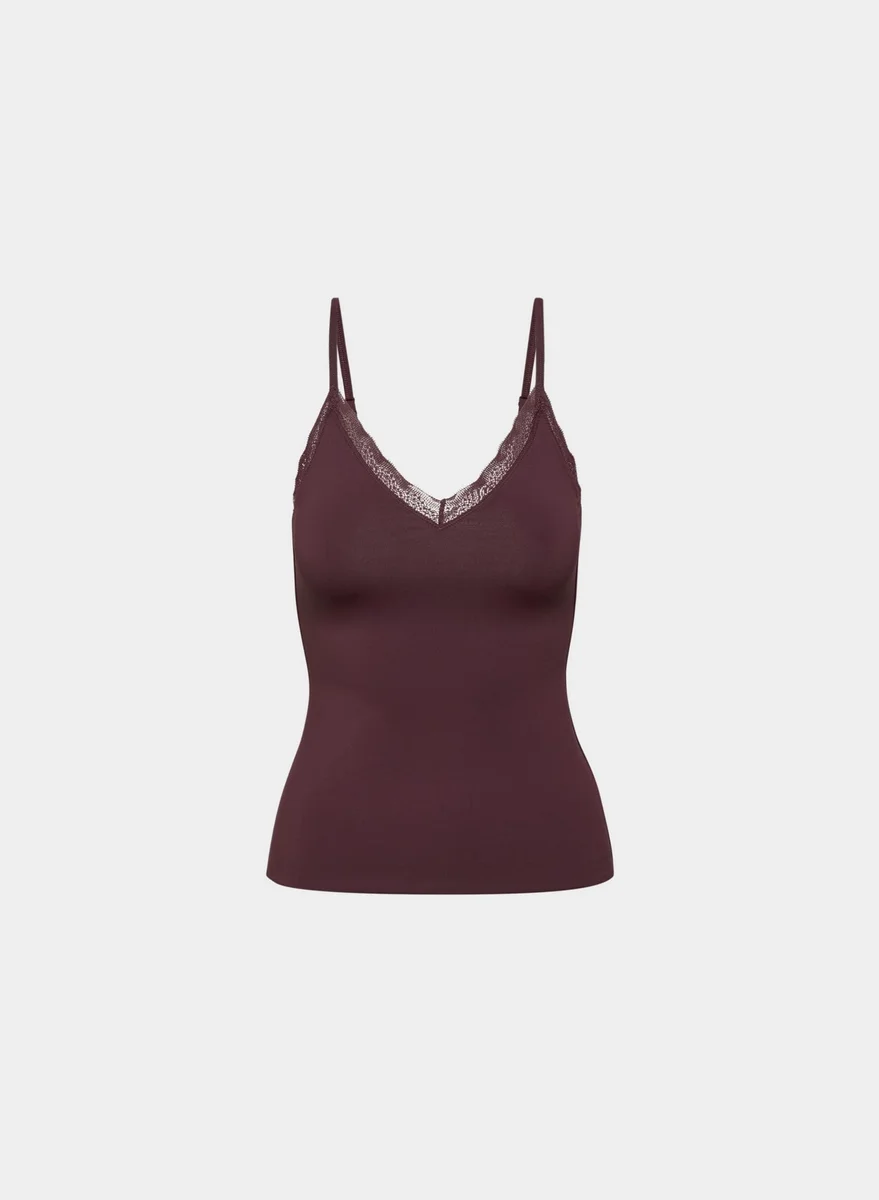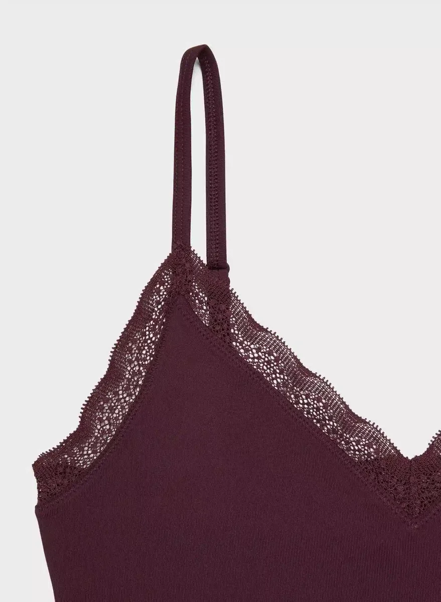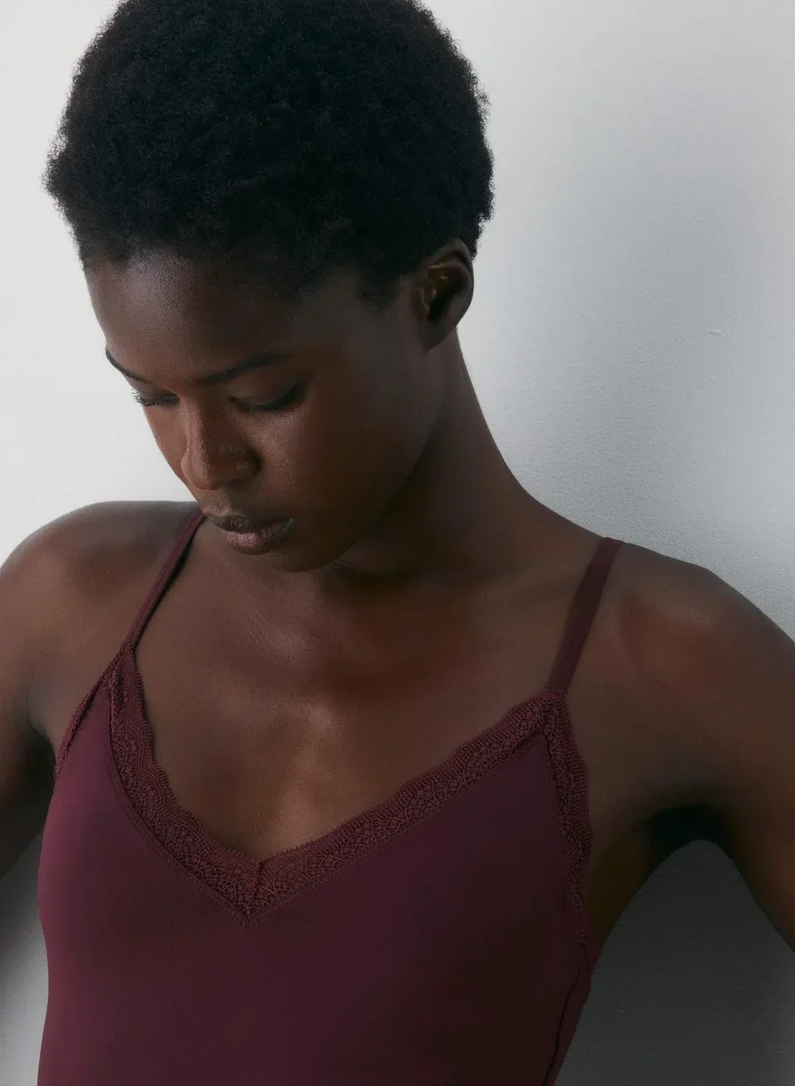 Frosted with laceThis is a V-neck cami with lace trim, adjustable straps and double-layer fabric for a supportive, body-shaping fit. It’s made with Aritzia’s Original Contour — luxe, ultra-flattering fabric coveted for its smoothing effect and second-skin feel. Nothing more essential.