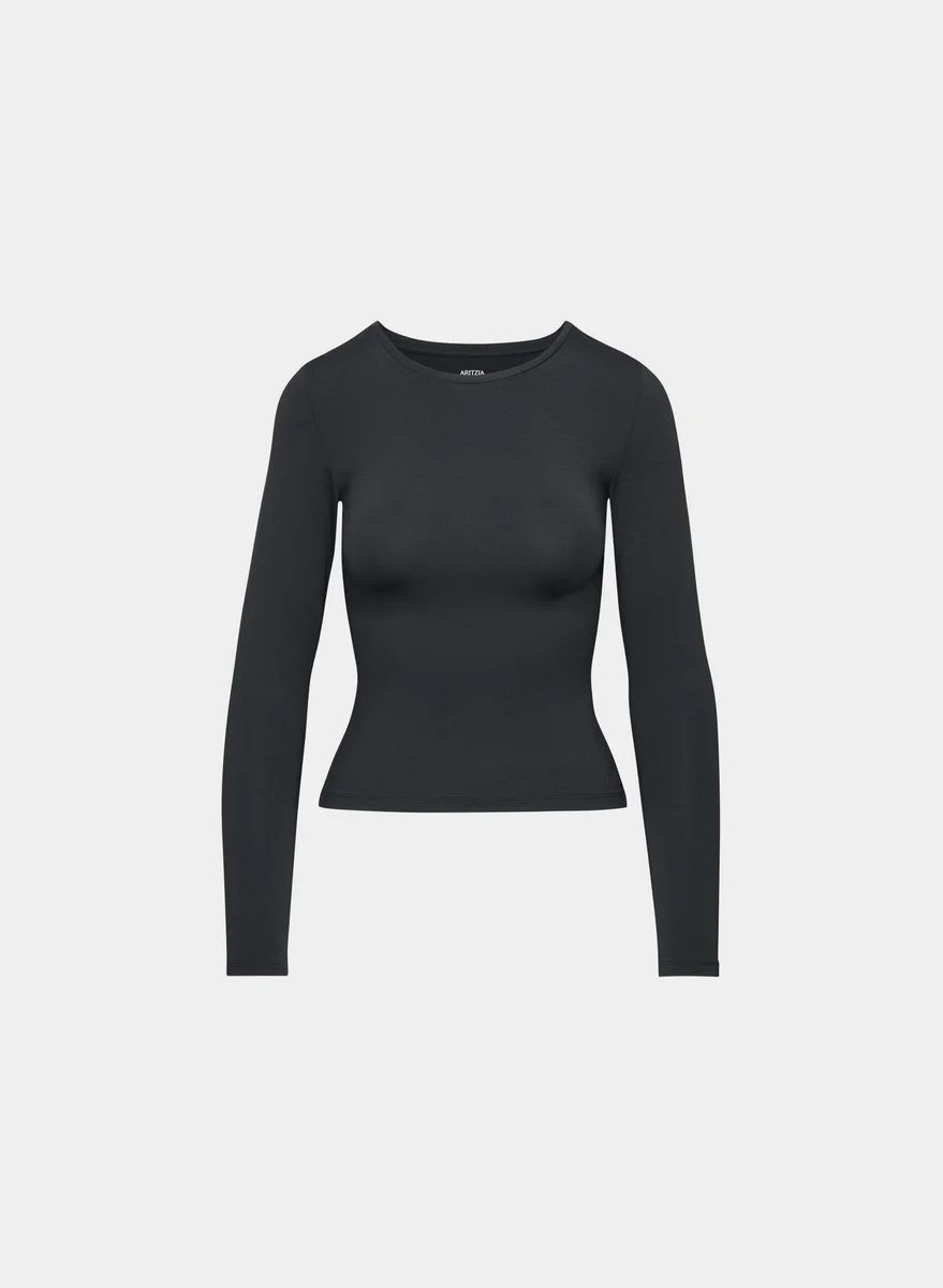 This is a crewneck longsleeve with single-layer fabric for a light hold and easy wear. It’s made with Aritzia’s Original Contour — luxe, ultra-flattering fabric coveted for its smoothing effect and second-skin feel. Nothing more essential.