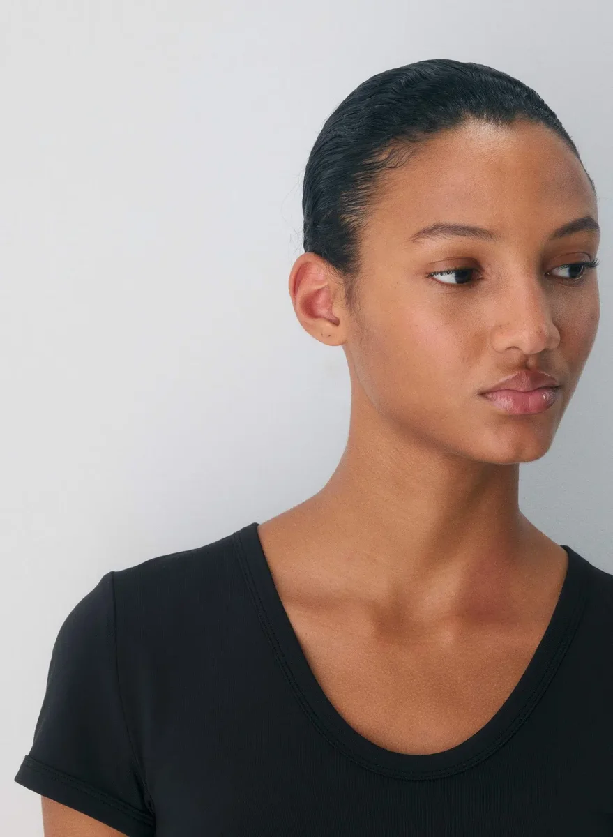 This is a tee with double-layer fabric for supportive, body-shaping fit. It’s made with Aritzia’s Original Contour — luxe, ultra-flattering fabric coveted for its smoothing effect and second-skin feel. Nothing more essential.