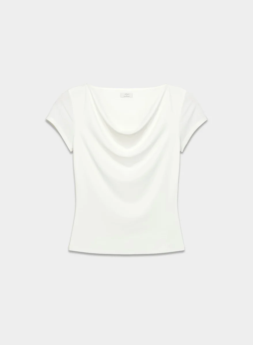 Drapey jersey cowlneck top with cap sleeves